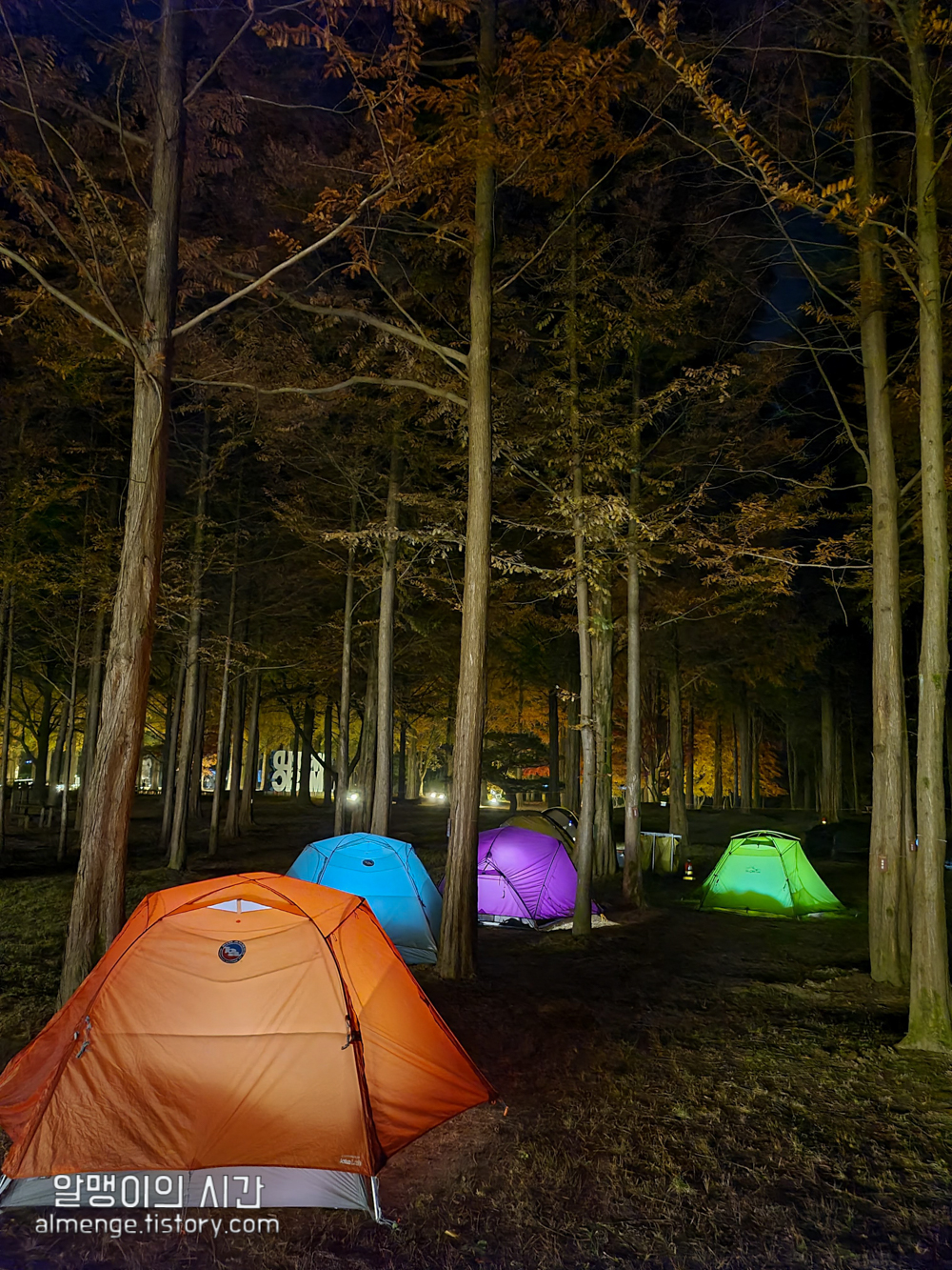 마침 단풍 절정시기였던 남이섬은 걷기만 해도 그냥 예쁘고 ㅎㅎ 1, 2, 3캠핑존 중 어디에 텐트를 피칭할까 고민하다 조명을 켜놓는 2존은 너무 밝을 것 같아 3존에 피칭하기로 했는데 조용하고, 개수대와 화장실, 편의점도 가까워서 만족했다.