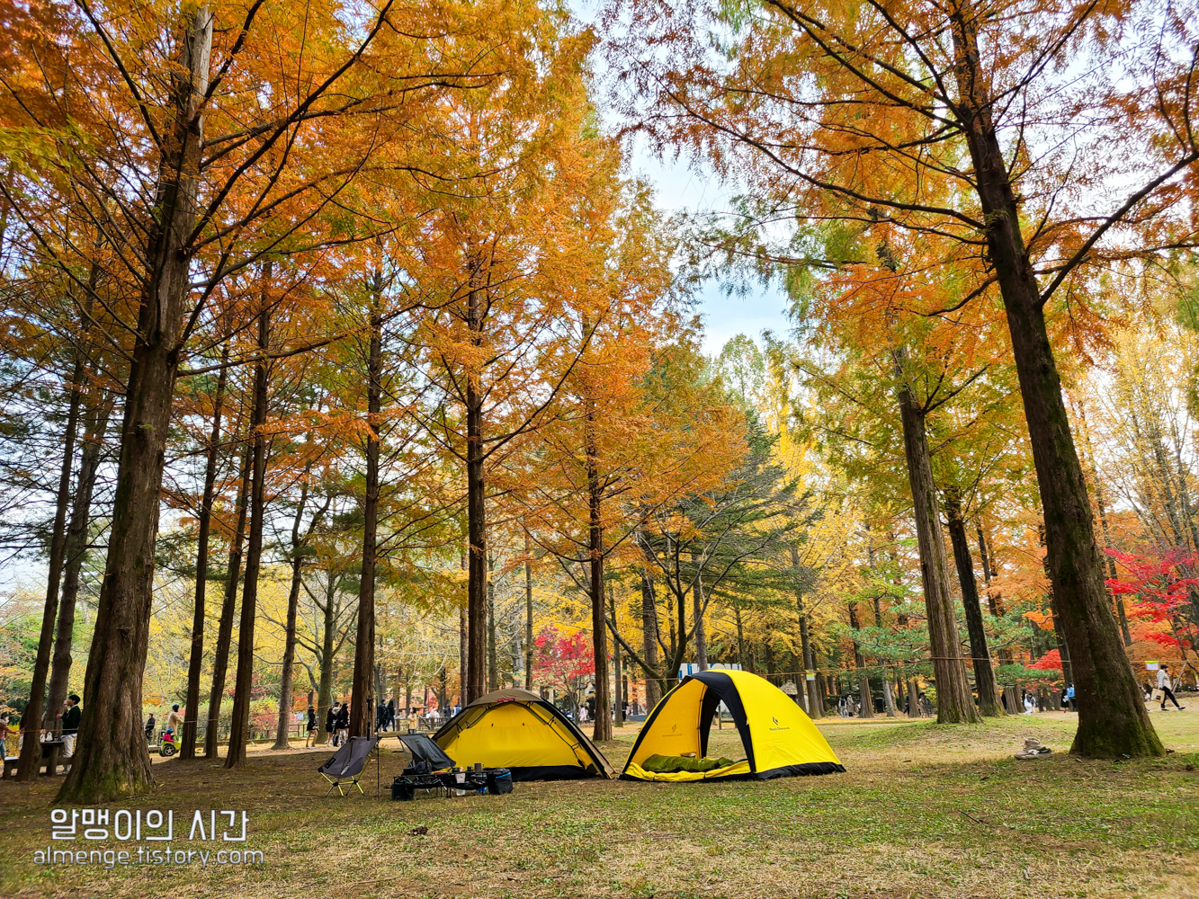 완전 가을가을한 남이섬. 사진만으로도 넘나 예쁜 여기가 오늘의 집이다ㅎㅎ 텐트는 캠핑존 1, 2, 3 중 원하는 곳에 치면 되고 오후 3시 이후부터 텐트 피칭 가능. (다음날 오전 11시까지 철수)