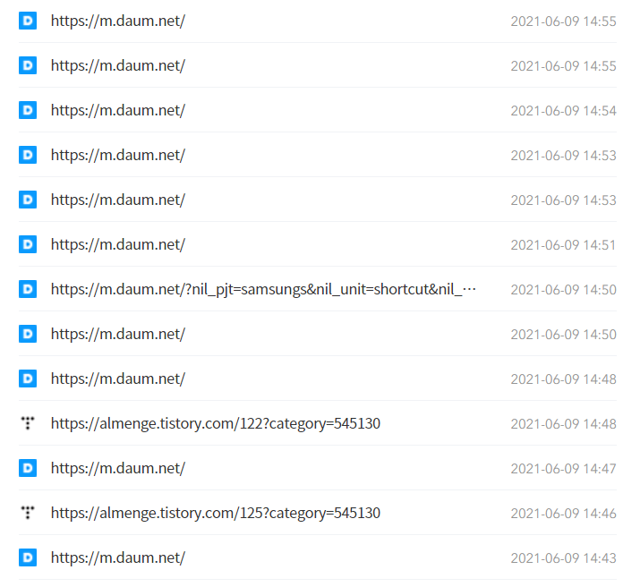 다음 메인에 오르면 유입로그가 온통 다음으로 뒤덮이게 돼요. 위 캡쳐는 끝물(?)에 캡쳐한거라 사이사이 다른게 끼어 있지만 한창 메인에 올라 있을 때는 1분 안에도 수십개의 유입로그가 다음으로 찍히게 돼요.