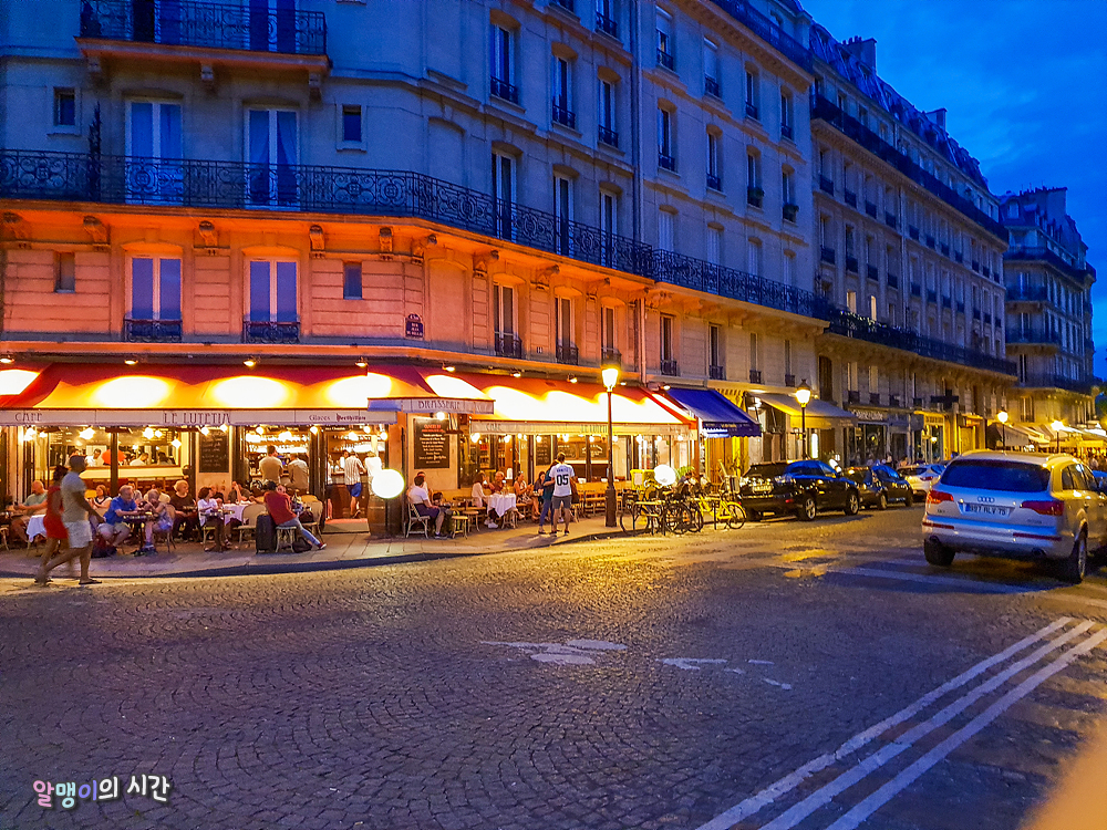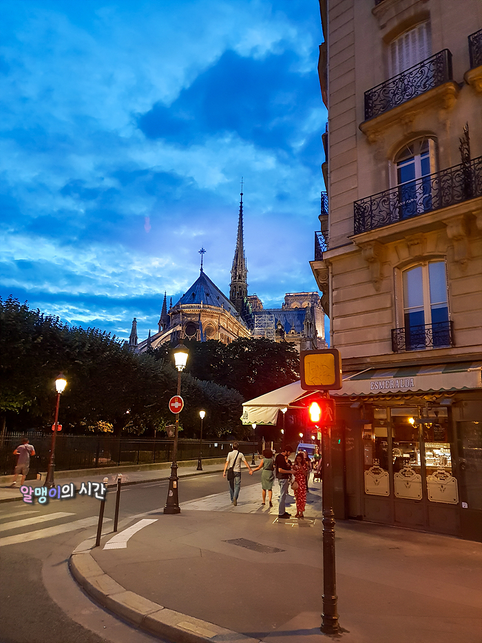 노트르담 대성당 뒷모습을 볼 수 있는 세느강 다리를 향해 걷는 중. 서양인들의 테라스 사랑이란 징그러울 정도이다. 내가 여러 나라를 여행하며 본 서양인들은 폭염이 오건말건 지나가는 차가 바로 앞에서 매연을 뿜어대건 말건 테라스바라기다. 테라스 자리가 있는 식당에 가면 내부는 텅텅 비었는데 테라스만 미어터지는 경우가 참 흔할 지경. 그래도 오늘같은 선선한 날씨엔 테라스가 좋지 ㅎㅎ