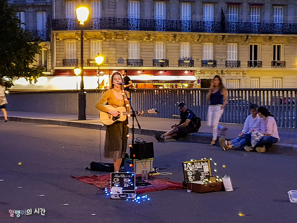 세느강을 가로지르는 다리 한 가운데선 버스킹이 한창이다. 겨울엔 추워서 버스킹 하는 사람들도 잘 없던데, 여름엔 유럽 어딜가나 버스킹 하는 사람들을 참 많이 볼 수 있었다. 나도 잠깐 가던 길을 멈추고 다리 난간에 기대 한참 음악을 듣다 상자 안에 팁을 남기고는 다시 가던 길을 간다. 음악 듣다 세느강 한 번 보고, 또 음악 듣다 길 가는 사람 한 번 보고.. 이런 여유가 참 좋다. 비록 오후 3시 반까지 늦잠은 쳐 잤지만 말이다....^^