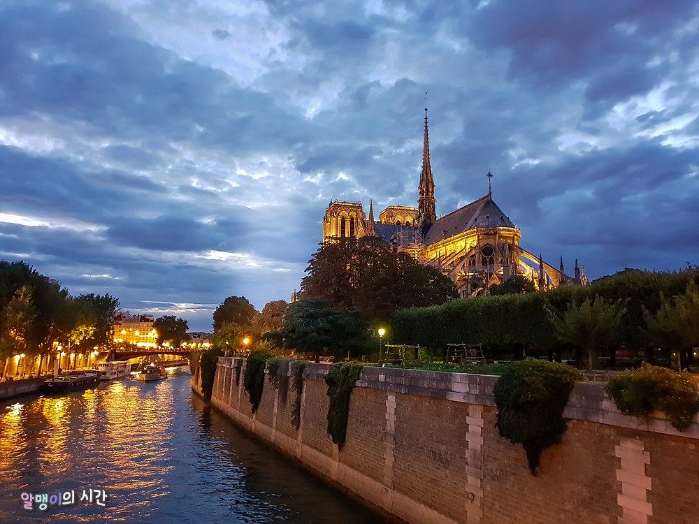 얼마나 걸었을까, 내가 기대하던 노트르담 대성당의 엉덩이(!)가 보인다. 나만 그렇게 느끼는 건진 모르겠지만 난 노트르담의 앞모습보단 뒷모습이 훨씬 좋다. 그래서 일부러 구글맵을 보며 성당 뒷편이 나오는 쪽으로 걸어왔다. 이번에 스냅 찍을 때는 노트르담 뒷모습이 보이는 다리 위에서 노을 스냅을 찍고 싶었는데, 시간상 동선이 안되어서 성사되지 못했다.