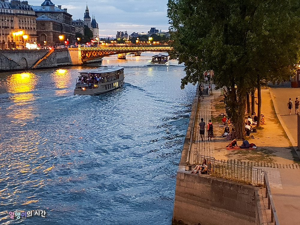 작년 1월에 왔을 때는 한겨울이었기에 종일 흐리고 비오고, 해도 일찍 져 버려서 저녁 10시의 이런 여유로운 산책은 꿈도 꾸지 못했었는데, 여름에 여행오니 참 좋네 ㅎㅎ 유럽 여행 겨울vs여름 이면 당연히 여름승! 물론 봄은 여름과 겨울 뒤에서 말없이 웃고 있겠지. 하지만 보통 직장인이 봄에 휴가 내기란....흠 그러니 나에겐 여름이 최선. 세느강변에 돗자리 깔고 앉아 여유를 즐기는 사람들이 부럽다. 나도 돗자리 가져올걸