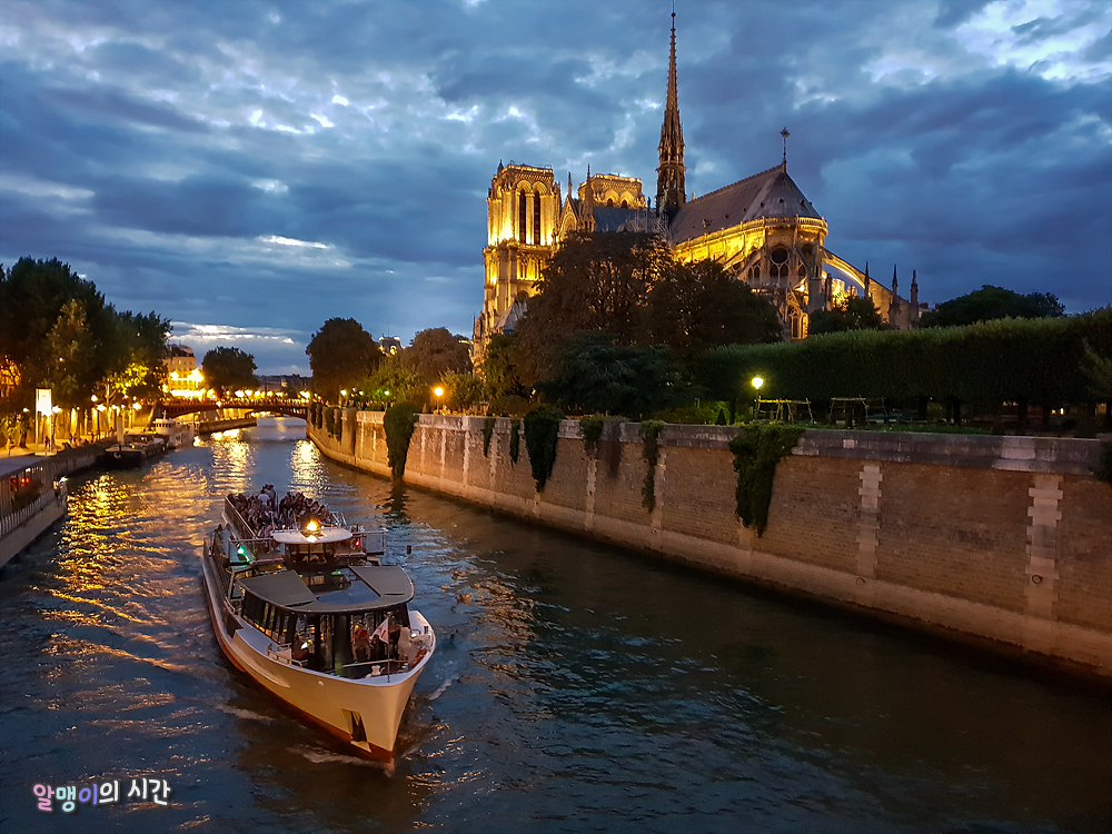 때마침 옆을 지나가는 유람선이 꼭 그림같다. 예쁜 노트르담 뒷모습을 한참 지켜보다가 지나가는 유람선에 손을 흔들며 관광객 코스프레 중. 이런 아름다운 곳이 올해 4월 그렇게 허망하게 불타버릴 줄이야. 4월에 뉴스를 보고는 우리나라 일이 아님에도 왠지 모를 착찹함을 느꼈다. 하필 앞 부분은 비교적 멀쩡한데 뒷부분이 타버렸다고 하니 뒷모습을 좋아하던 나로선 더 그랬을지도.