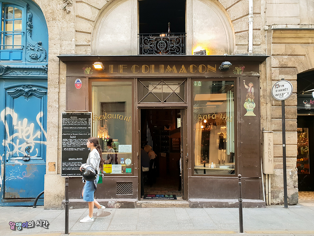 파리의 핫한 마레지구에 위치한 프렌치 레스토랑 Le Colimacon은 마레지구 골목 안에 있는 작고 아담한 2층짜리 레스토랑이다. 주위 가까운 관광지로는 피카소 미술관, 퐁피두센터 도보 7분, 메르씨 도보 10분, 루브르, 노트르담(시테섬)은 도보 20분 정도