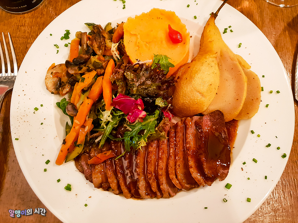 물론 그렇다 해도 작년 파리 여행 때 맛 없고 저렴하기만 했던 식당에서 먹었던 퍽퍽하고 그닥이던 오리 스테이크랑 비교하면 이 정도면 개맛있는거임.