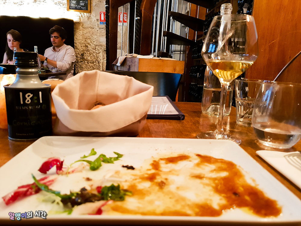 혼자 와인 한 잔, 에피타이저, 메인요리 시켜먹고 50유로 나왔다. 한 끼에 6만원을 넘게 썼으나,맛있는 집에선 혼자 요리 두 개쯤은 먹어줘야지^^ 나만 행복하면 된거. 사실은 디저트까지 먹었어야 했는데 배가 부른게 야속했다 ㅠㅠ