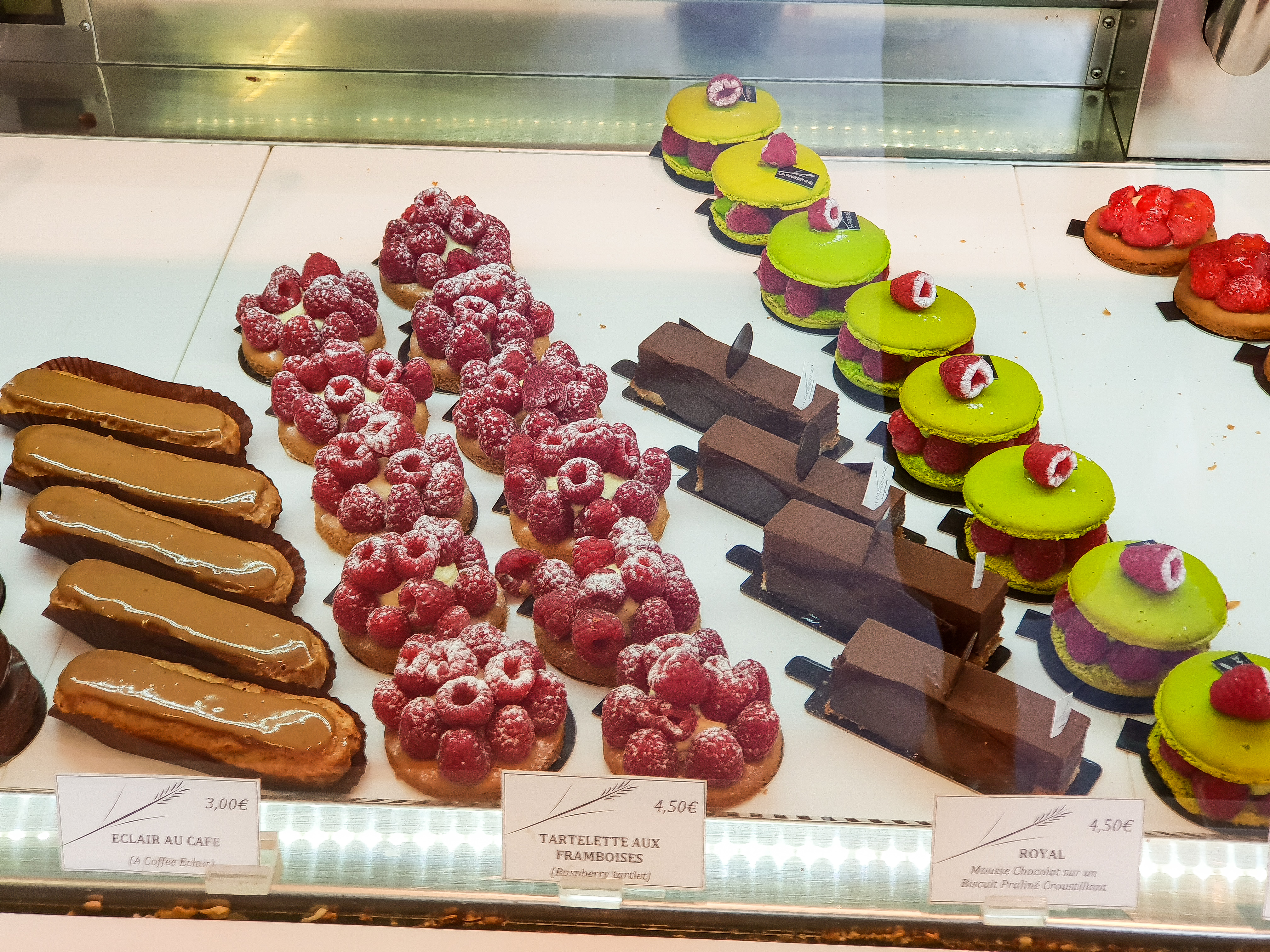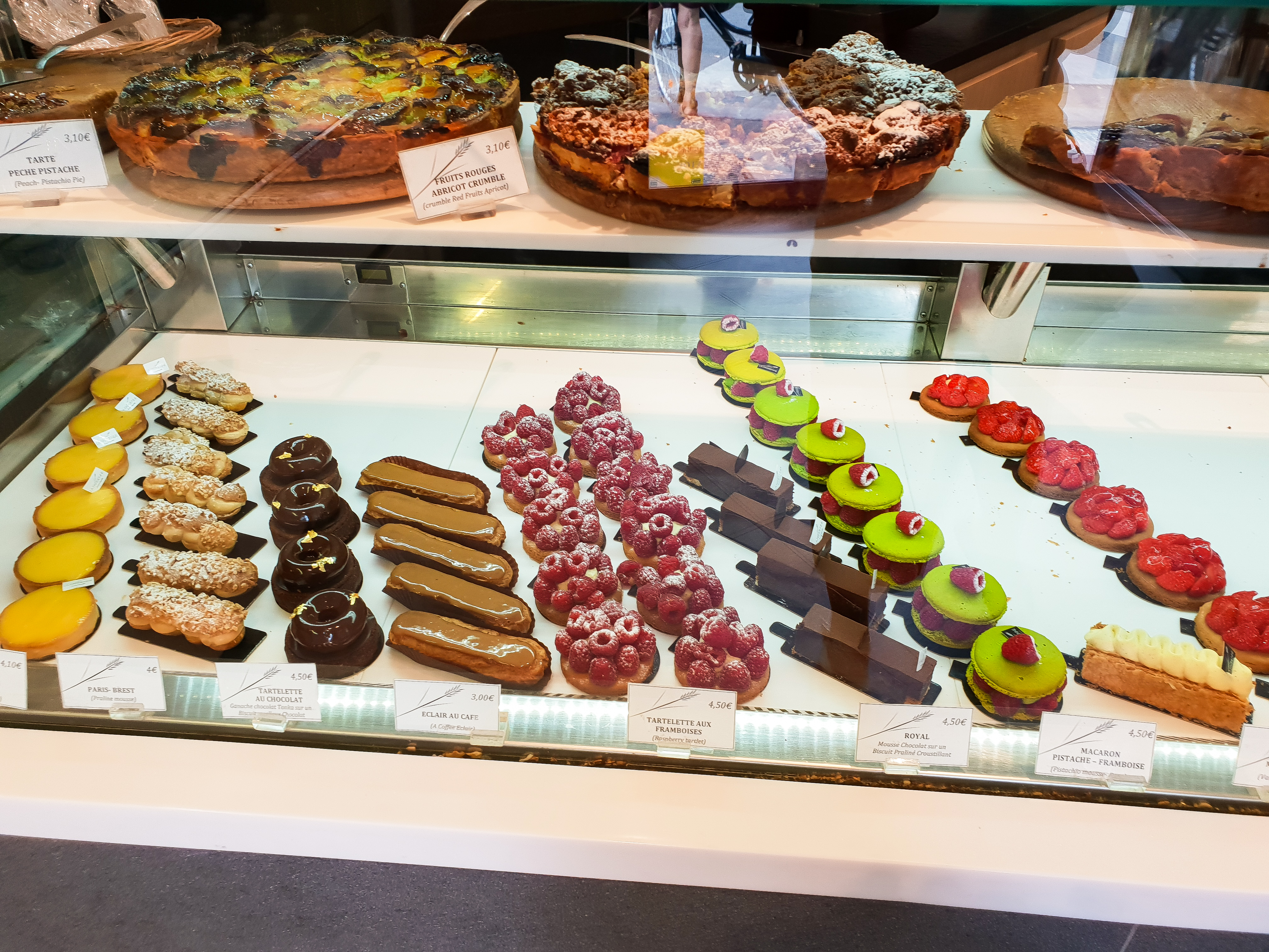 빵집에는 바게트 뿐만 아니라 다양한 디저트류도 많이 판매하고 있었다. 가격은 3~5유로 내외. 맛있어 보였지만 바로 직전에 앙젤리나에서 당충전을 너무 빠방하게 하고 온 관계로 도전하지 못했다. 지금 사진보니 너무 맛있어보여 ㅠㅠ그냥 사먹을걸 그랬다 ㅠㅠ 윗 칸에 크럼블 정말 맛있어 보인당...... 그래 담에 파리 또 가는거야?!! ㅋㅋㅋ