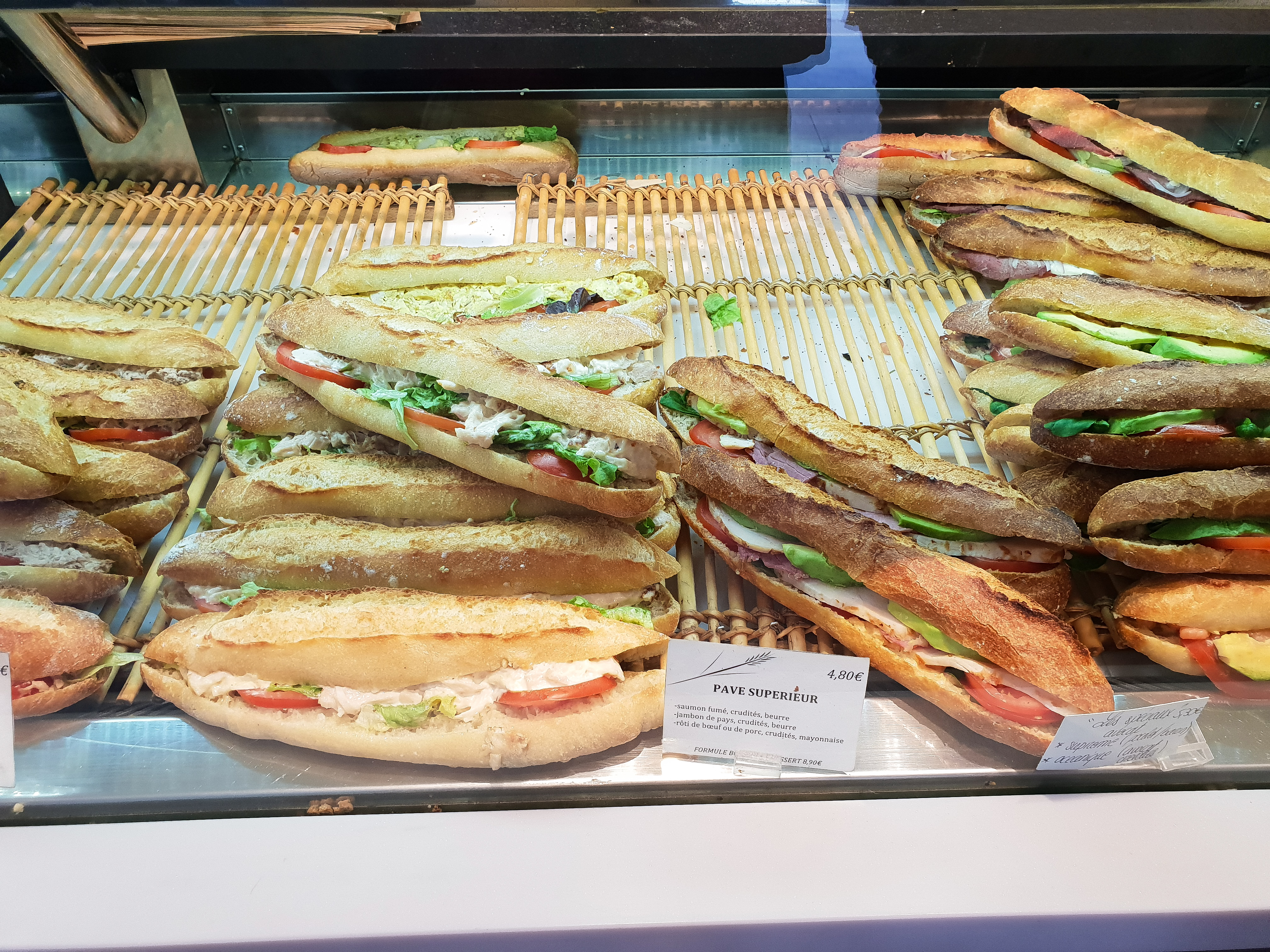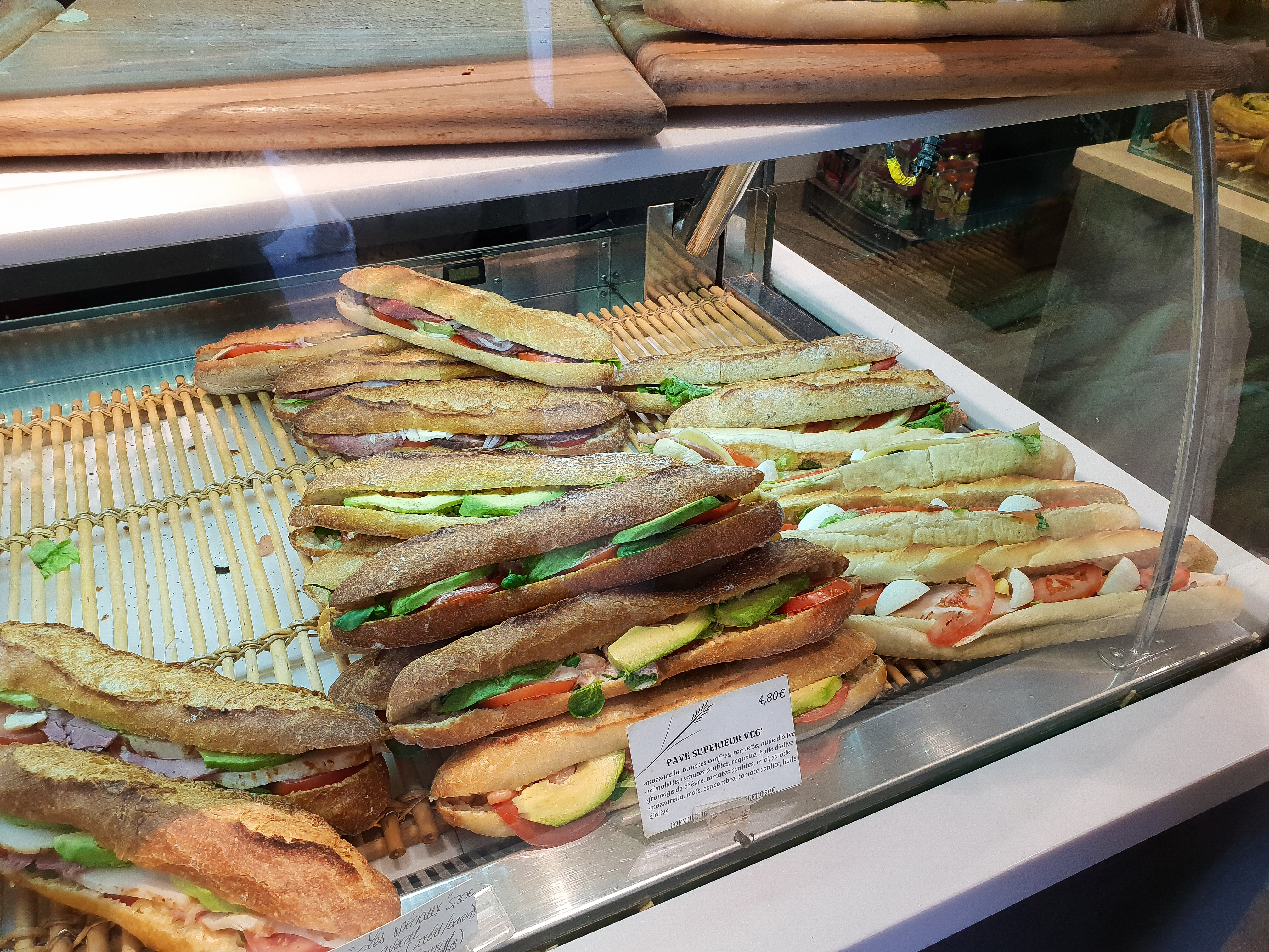 생 바게트만 판매하는게 아니라 이렇게 바게트 샌드위치도 판매하고 있다. 바게트 하나를 통으로 샌드위치로 만들어 2명이 같이 먹어도 배부를 양이다. 참치마요, 닭고기, 돈까스(?), 아보카도, 계란 등 다양한 취향에 맞는 여러 종류의 샌드위치를 팔고 있었다.