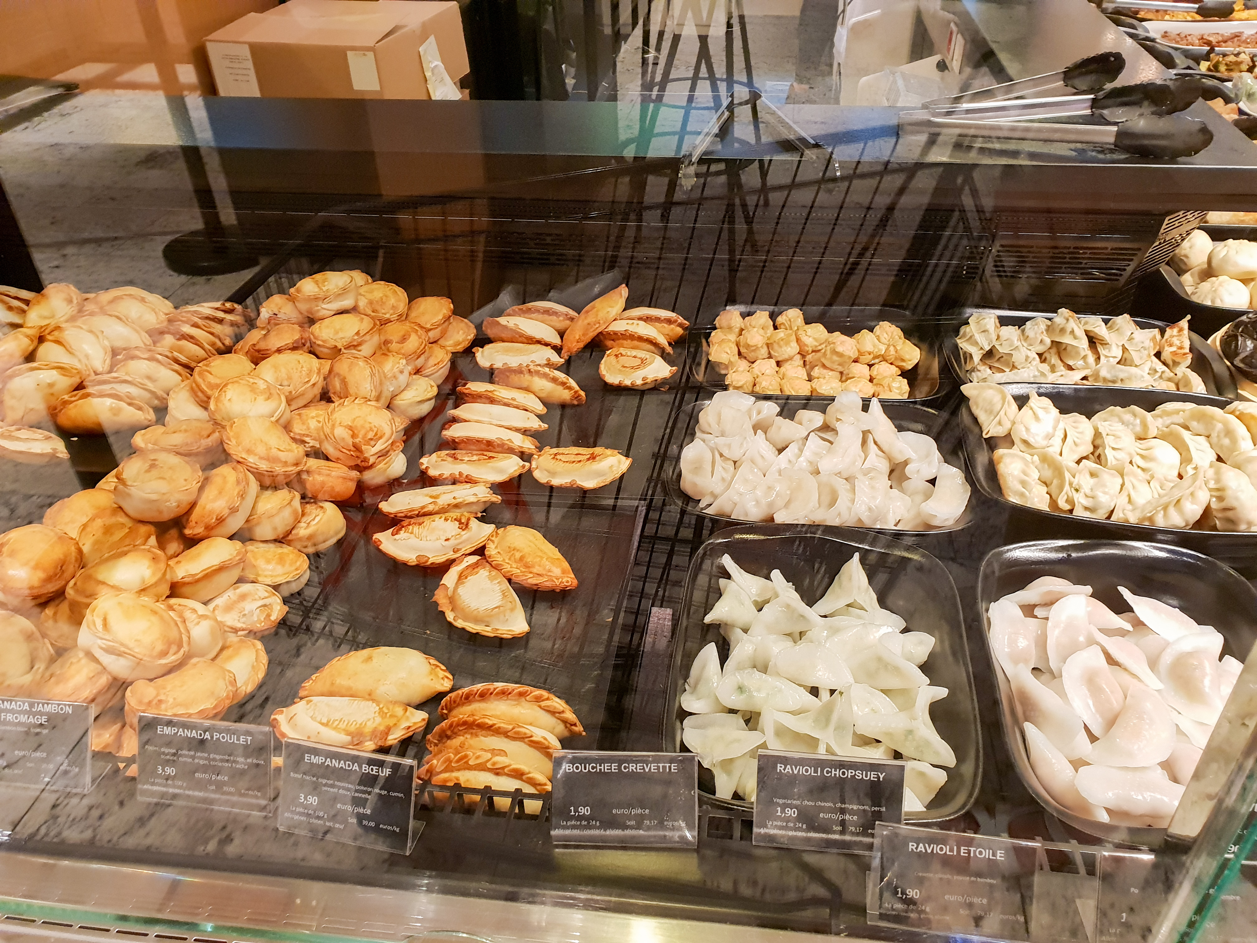 그리고 즉석식품 코너. 그저그런 식품코너인줄 알았는데 잘 보니 입이 떡 벌어질만큼 다양했던 음식들. 프랑스 음식 뿐만 아니라 아시아 음식들도 엄청 많다. 스프링롤, 딤섬류는 기본이고 어묵, 샐러드 종류,
