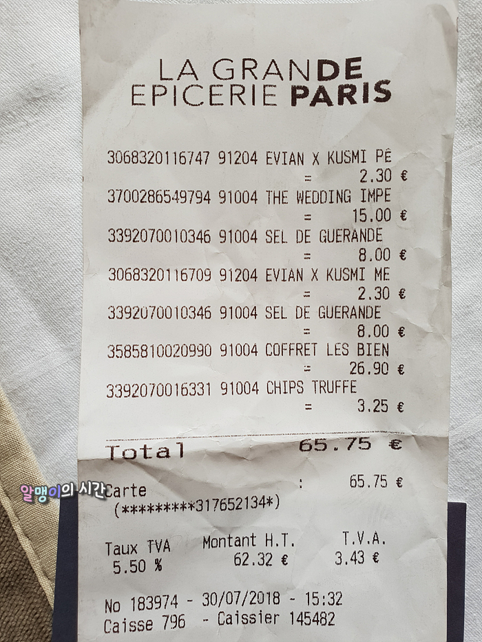 그래도 잘 모르겠으면 구글맵에 La Grande Epicerie de Paris 를 검색해서 여기가 있는 건물로 가자. 이게 그 식품관 이름이다. 나중에 계산할 때 영수증에도 이 이름이 찍혀 나왔다.