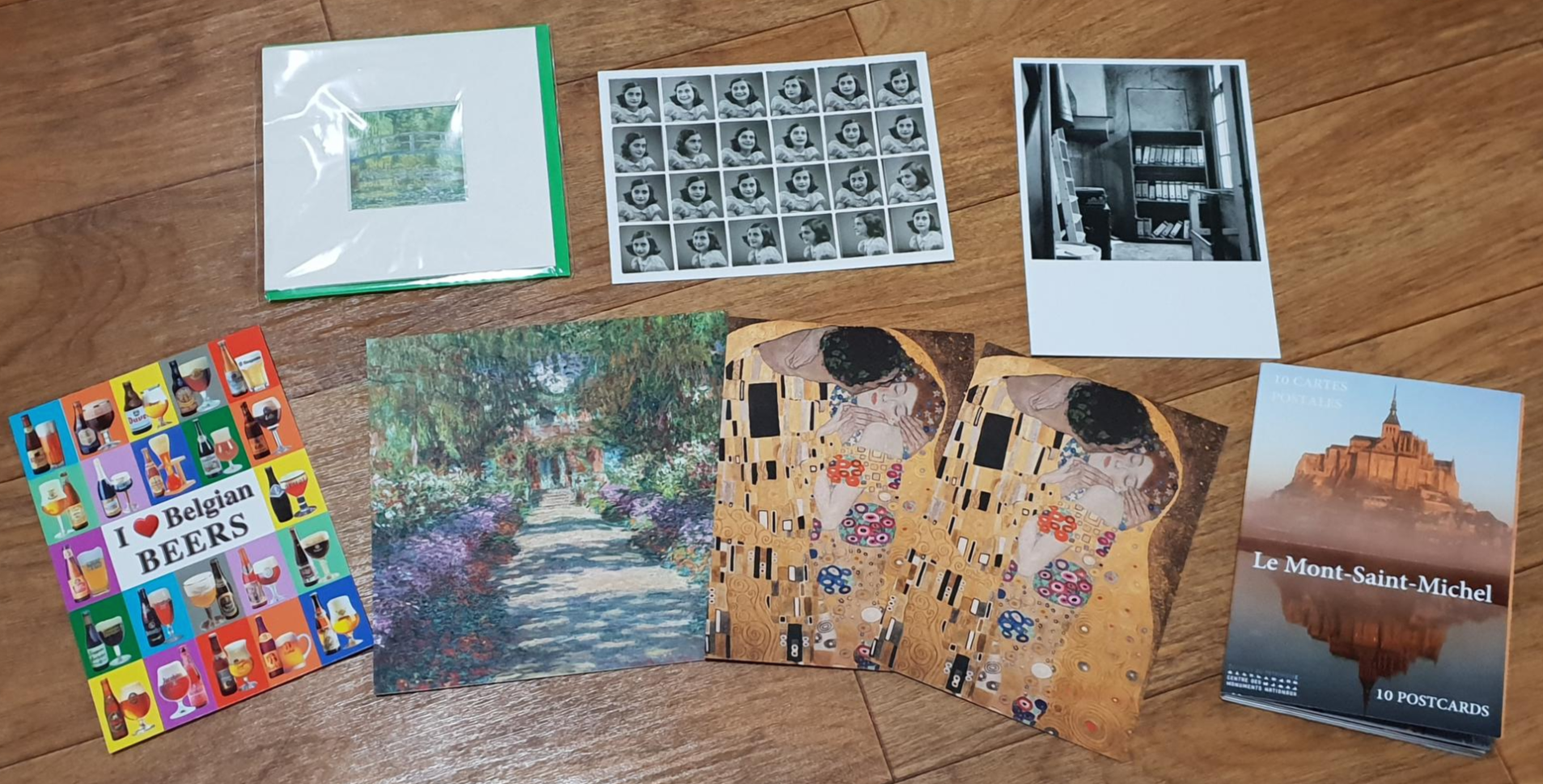 얘는 몽생미셸 기념품샵에서 산 엽서에요. 보통 유럽관광지에서 파는 기념 엽서는 좀 촌시럽고 별로인 풍경사진이 많은데 몽생미셸 성안에 있던 기념품샵에서 팔던 이 엽서는 사진도 꽤 세련되고 멋져서 사게 되었어요. 한 장씩 찢어 쓸 수 있는 엽서 10매 세트를 4유로에 구입했어요.