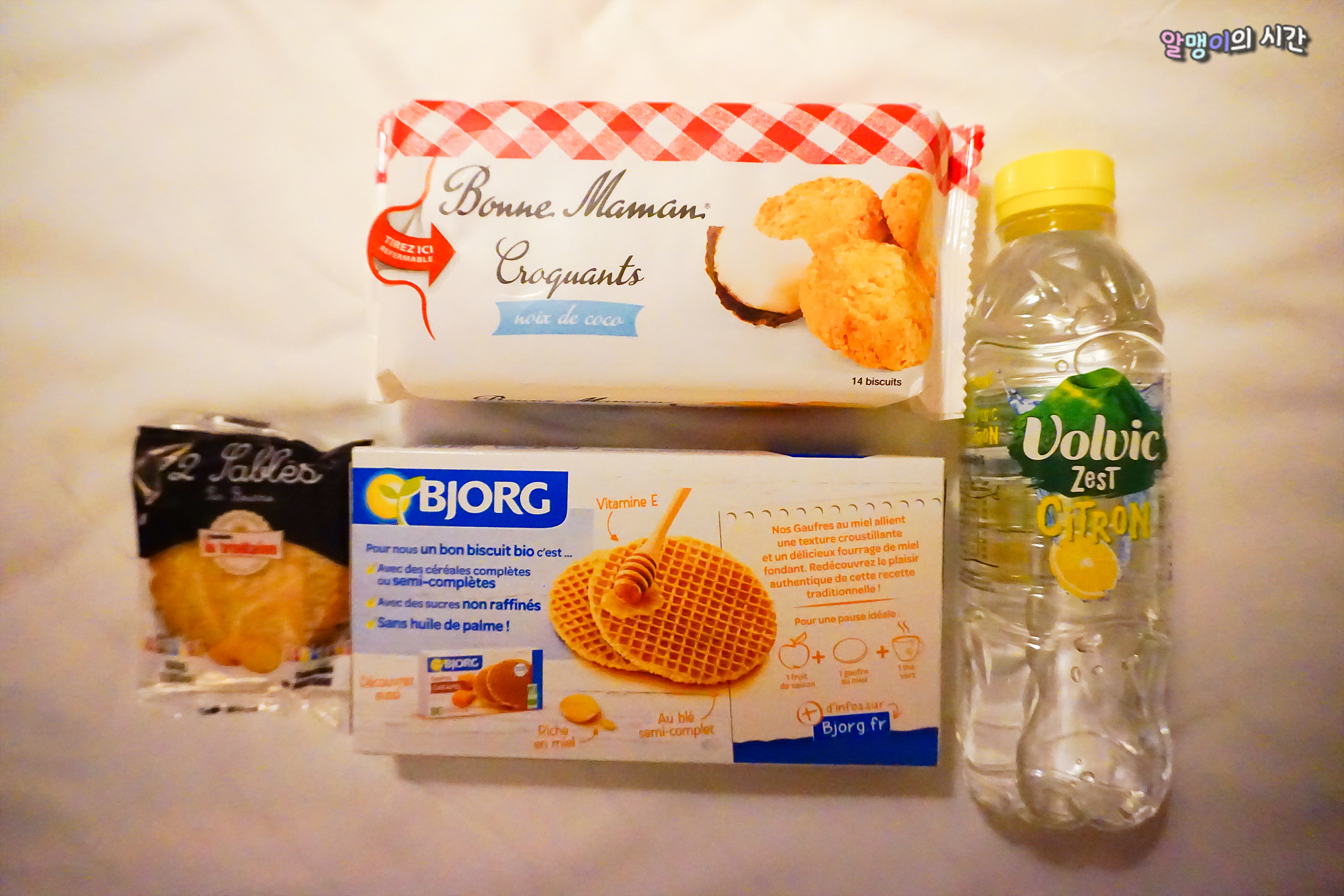 이 두개는 몽생미셸 투어 중 들른 휴게소 마트에서 샀어요. 근데 아마 시내에도 팔거에요. 와플과자 4유로, 코코넛 과자 3.3유로에 구입. 휴게소 마트라 쬐끔 비싸게 파는 느낌