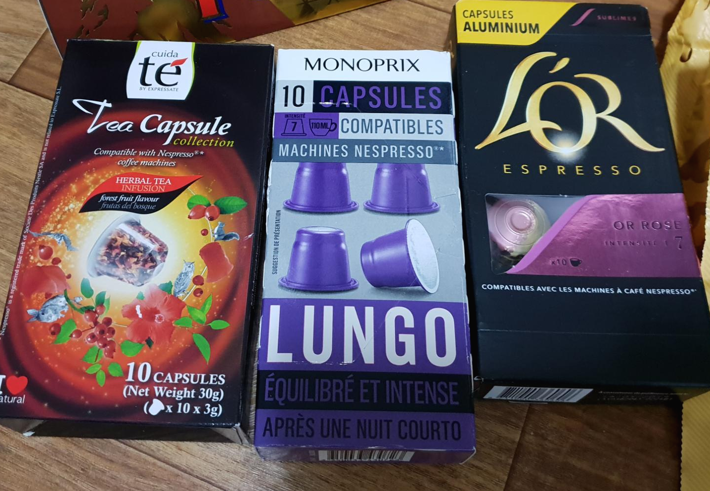 좀 특이한거만 소개하면 네스프레소 호환 캡슐인데요. 맨 왼쪽 빨간 색은 커피가 아니라 차(Tea) 캡슐이에요!! 특이해서 사봄~ 사실 아직 맛은 안봐서 어떤지는 모르겠구요 ㅠㅠ 오른쪽 두 개는 커피캡슐인데 저렴하길래 사봤어요. 집에서 잘 내려마시고 진작에 품절시킴!!