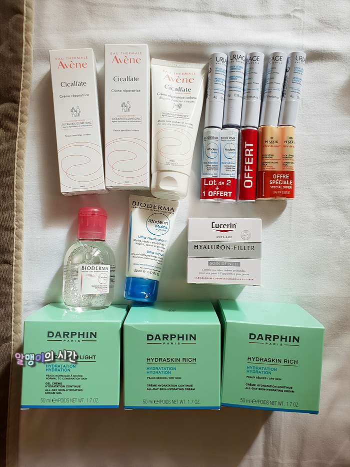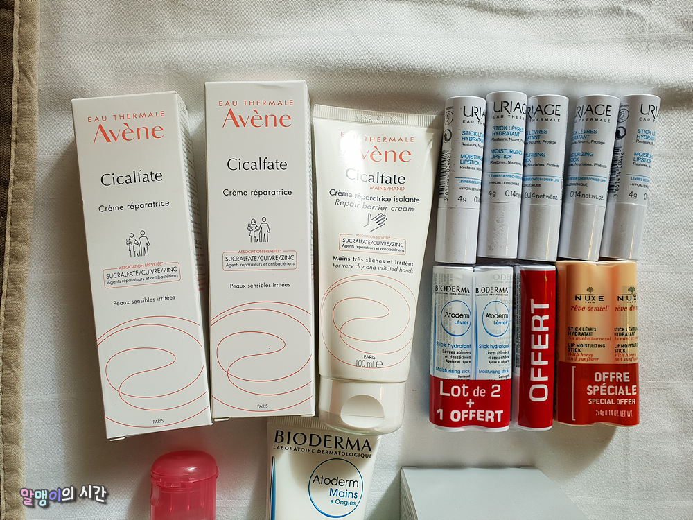 제가 늘 쓰는 제품인 아벤트 시칼파트 재생크림 넉넉히 2개 구매. 그리고 시칼파트라인 핸드크림도 보이길래 한 번 사봤어요. 유럽은 여름이 건조한지라 여행하면서 바를 겸 하기도 했구요. 유리아쥬 립밤은 1년 365일 립밤을 달고 살아야만 입술이 안녕하신 제 동생을 위한 것.