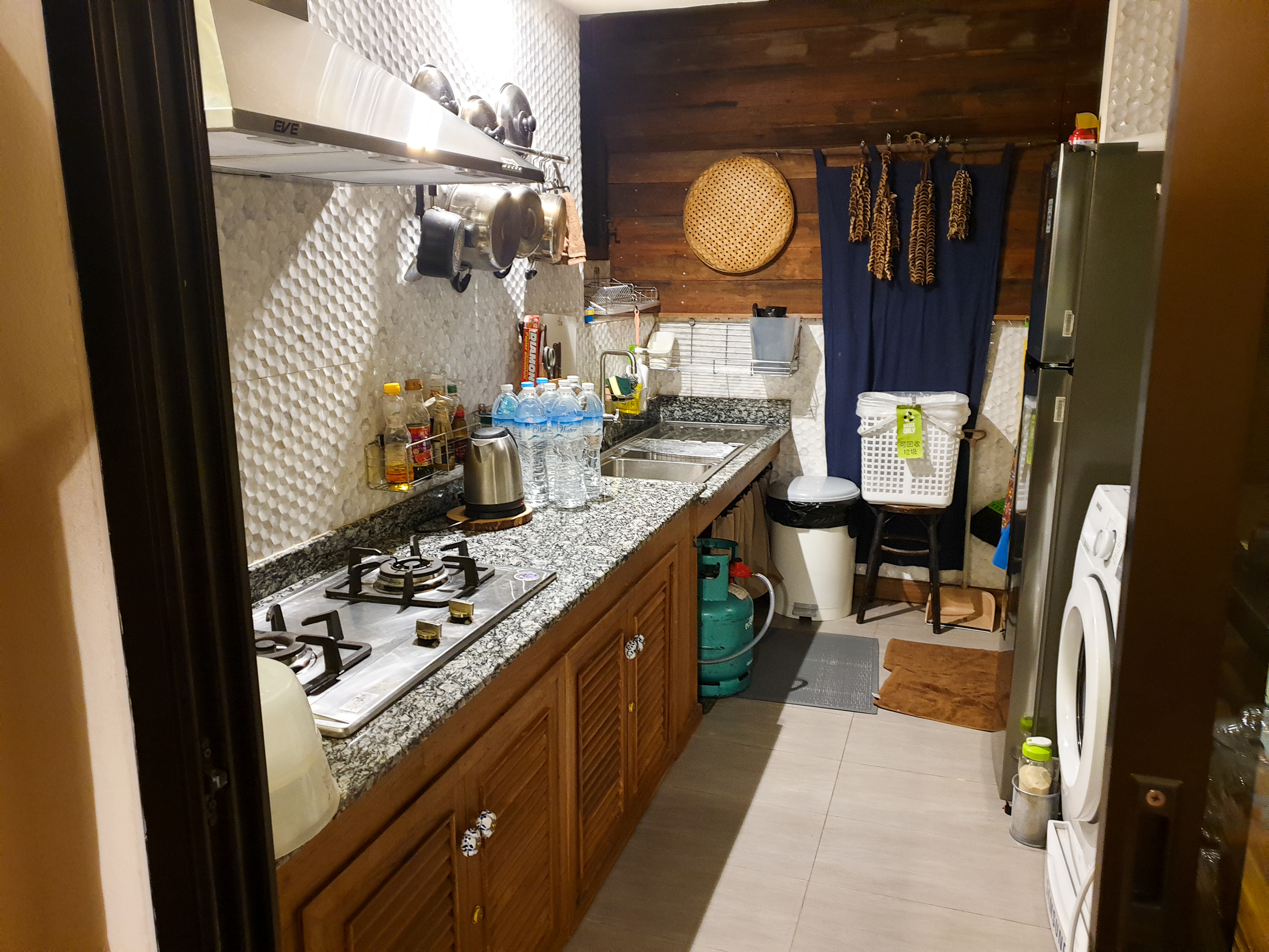 위의 현지스러운 나무 인테리어 뿐만 아니라 이 집은 정말 없는게 없는 집이었어요. 1층에 있던 부엌에는 취사를 위한 각종 도구가 마련되어 있을 뿐만 아니라 세탁기, 심지어는 (옛날버전의) 건조기까지 있었어요. 세탁기는 삼성 드럼세탁기 ㅋㅋ
