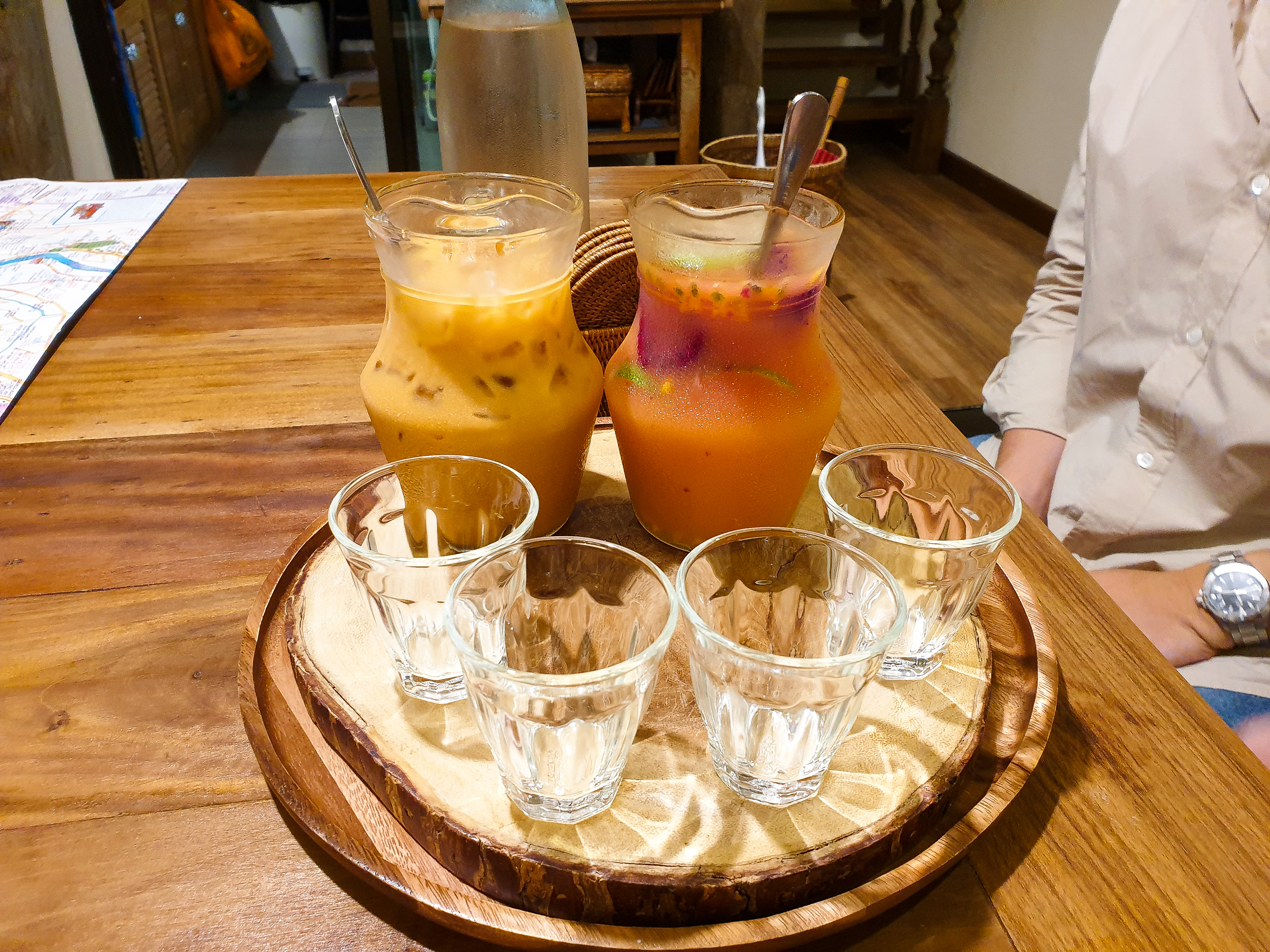첫날 저녁 공항에서 온 우리를 맞아준 호스트 삼남매는 우리를 안으로 안내하곤 타이 밀크티, 과일주스로 웰컴드링크를 주고는 숙소 이곳저곳을 다 데리고 다니면서 안내해주고, 샤워기 온수 사용법 등도 세심하게 알려주었어요.