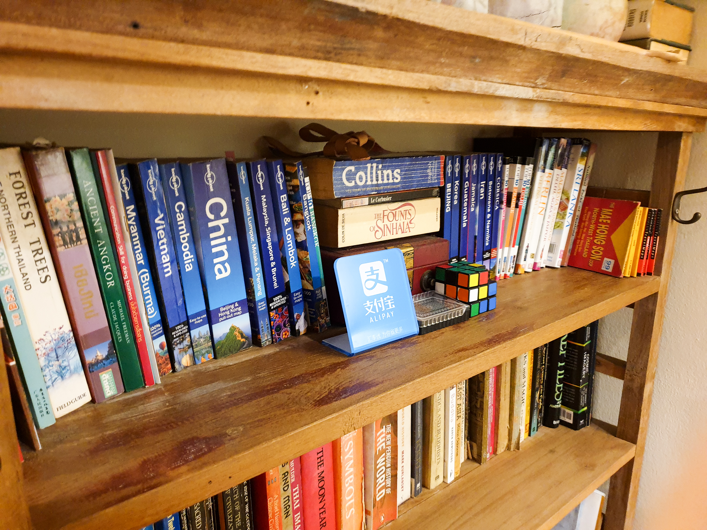 거실의 한 켠을 차지하고 있던 책꽂이의 책들. 나도 저렇게 론리플래닛 모으고 싶다 ㅎㅎ잘 보면 KOREA도 있다. 근데 저 알리페이로는 뭘 결제하는거지;;;