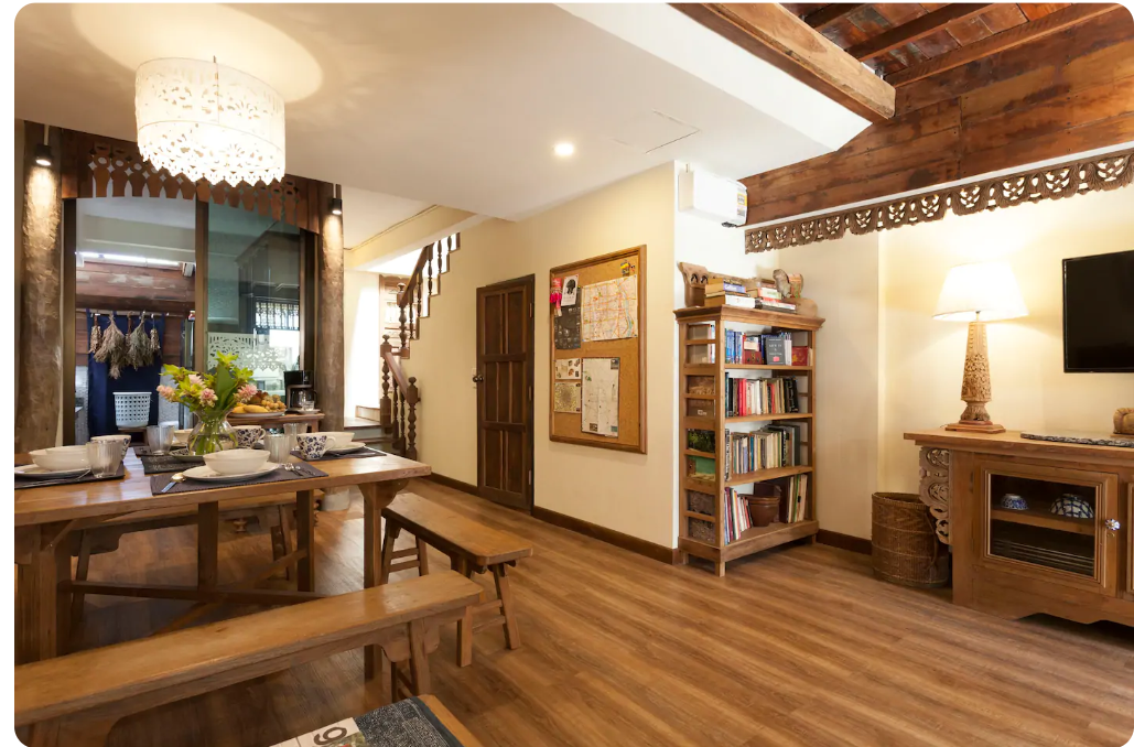 그래서 가족여행 사상 처음으로 에어비앤비를 이용해보게 되었어요:) 치앙마이에서의 3박 동안 우리집이었던 Villa Nittra Singharaj. 1박당 15만원 정도에 2층집 한 채를 통으로 빌려썼어요.