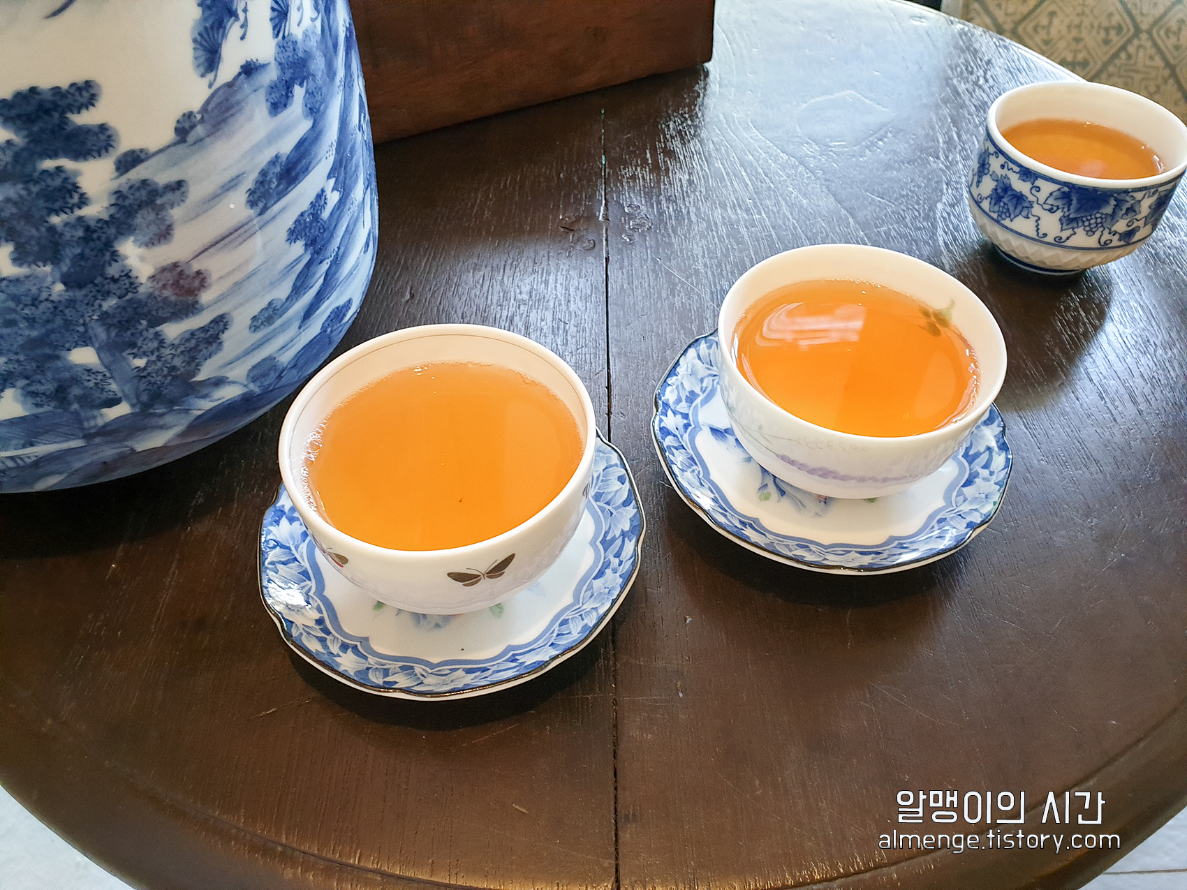 마사지를 받고 나오니 차 한 잔씩을 내주었다.