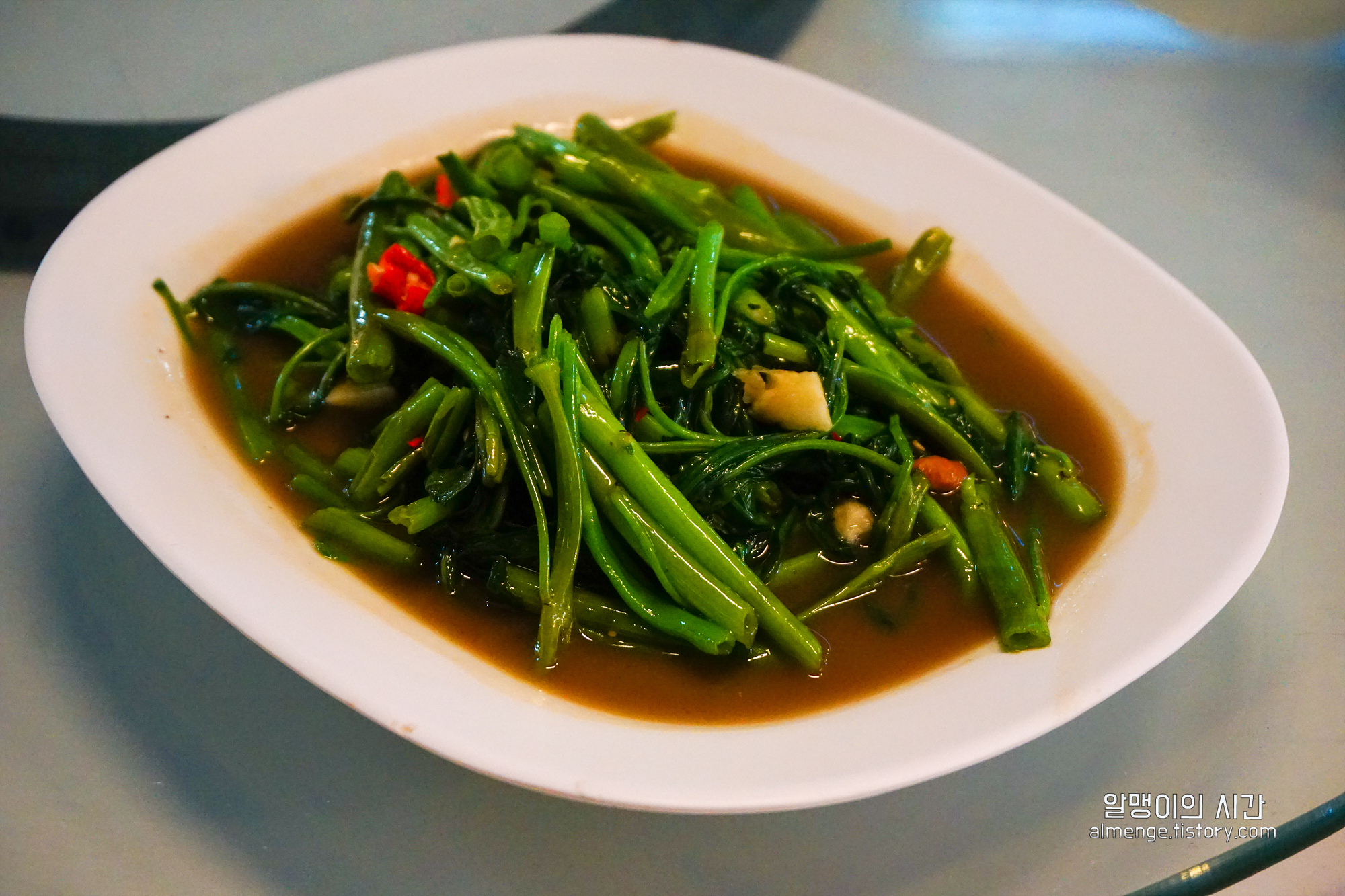 태국 오면 꼭 시켜줘야하는 아이 ㅎㅎ 짭쪼름 하면서 살짝 매콤한게 자꾸만 젓가락이 가는 맛이었다. 모닝글로리를 태국 왠만한 식당에서 시키면 왠만해선 다 맛있다. 그만큼 한국인과 딱 맞는 음식.