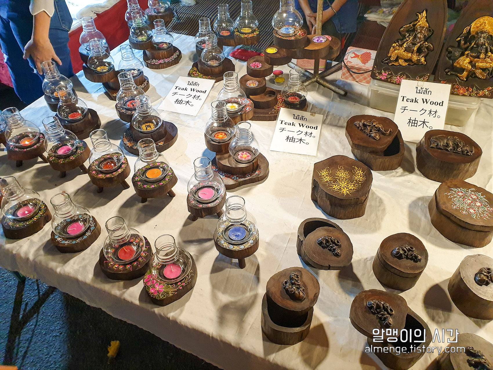 티크나무를 깎아 만든 보석함, 캔들 홀더도 팔고 있다. 캔들홀더가 특이하고 예뻤다.