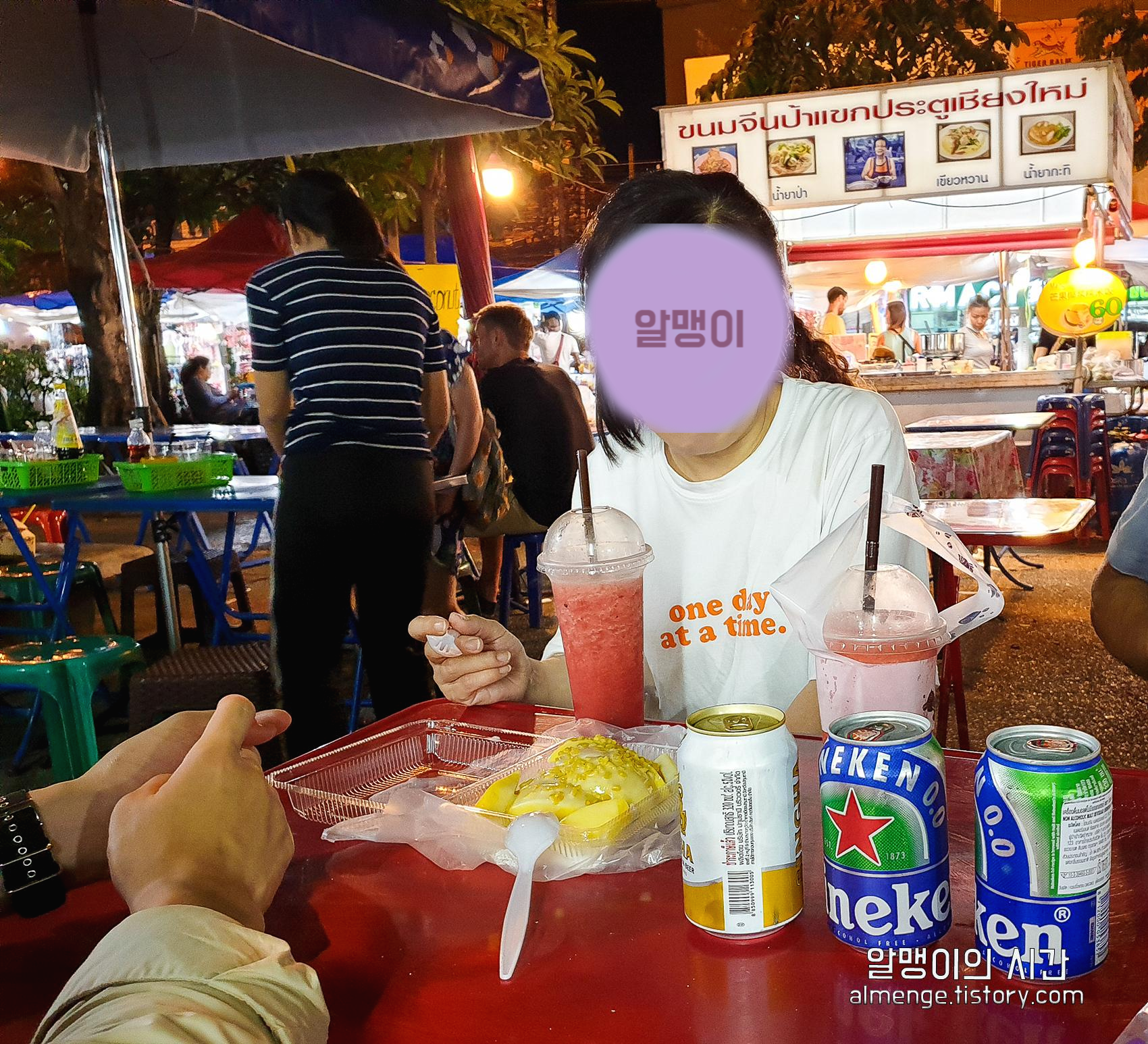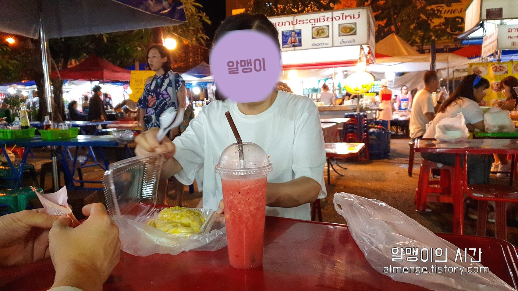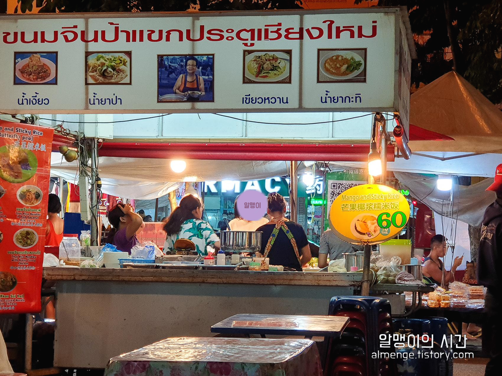 사진으로 찍은 건 이정도지만 치앙마이게이트 나이트 푸드마켓에는 팟타이, 망고스티키라이스, 똠양국수, 오리국수, 해산물집, 카놈크록, 볶음밥, 쏨땀, 과일주스집 등 다양한 길거리 음식들이 우리를 유혹했다.