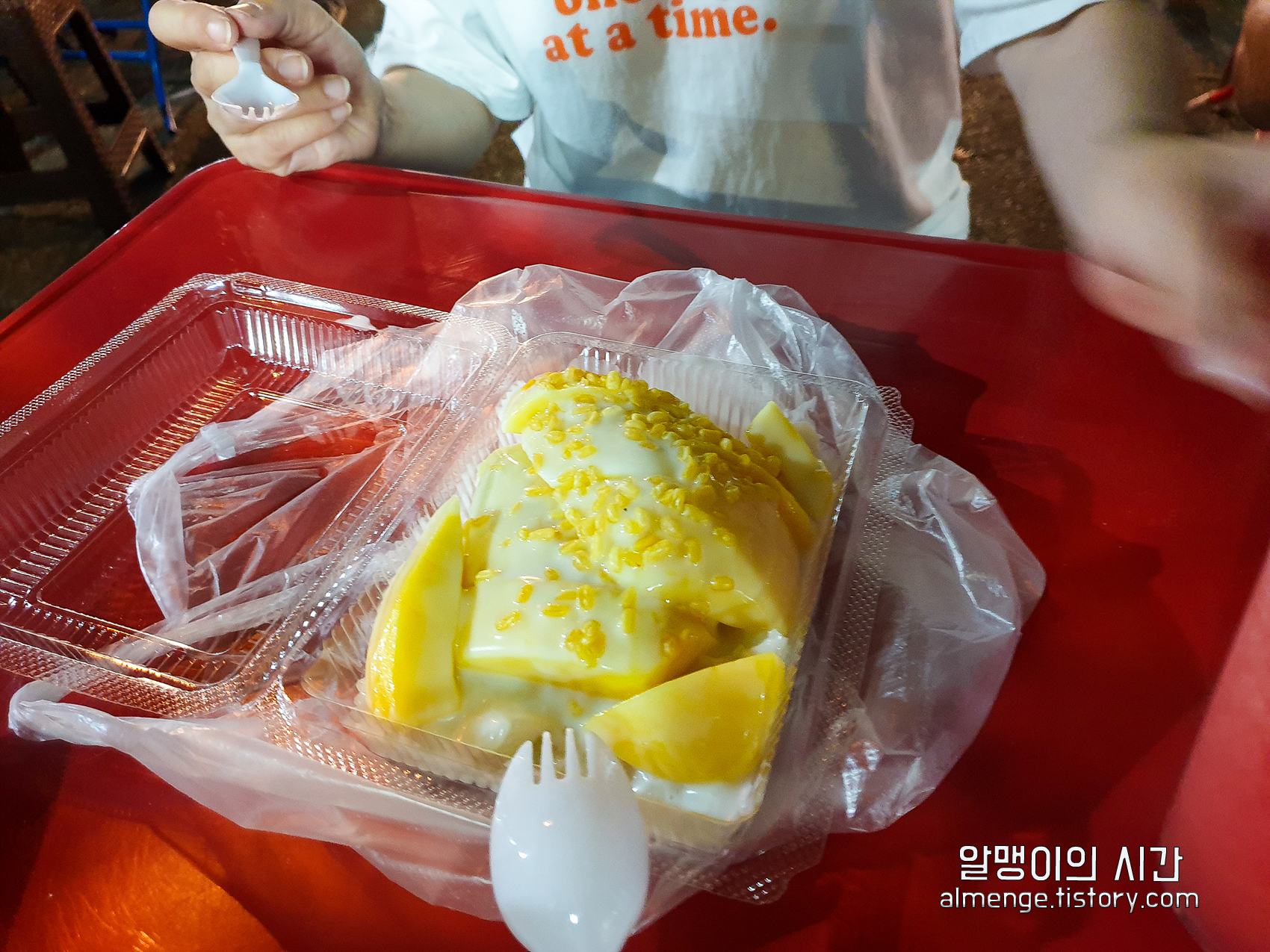 팟타이&망고스티키라이스&땡모반 매니아인 엄마는 길거리 망고스티키라이스는 어떤지 궁금하다며 망고밥을 포장해오셨다.