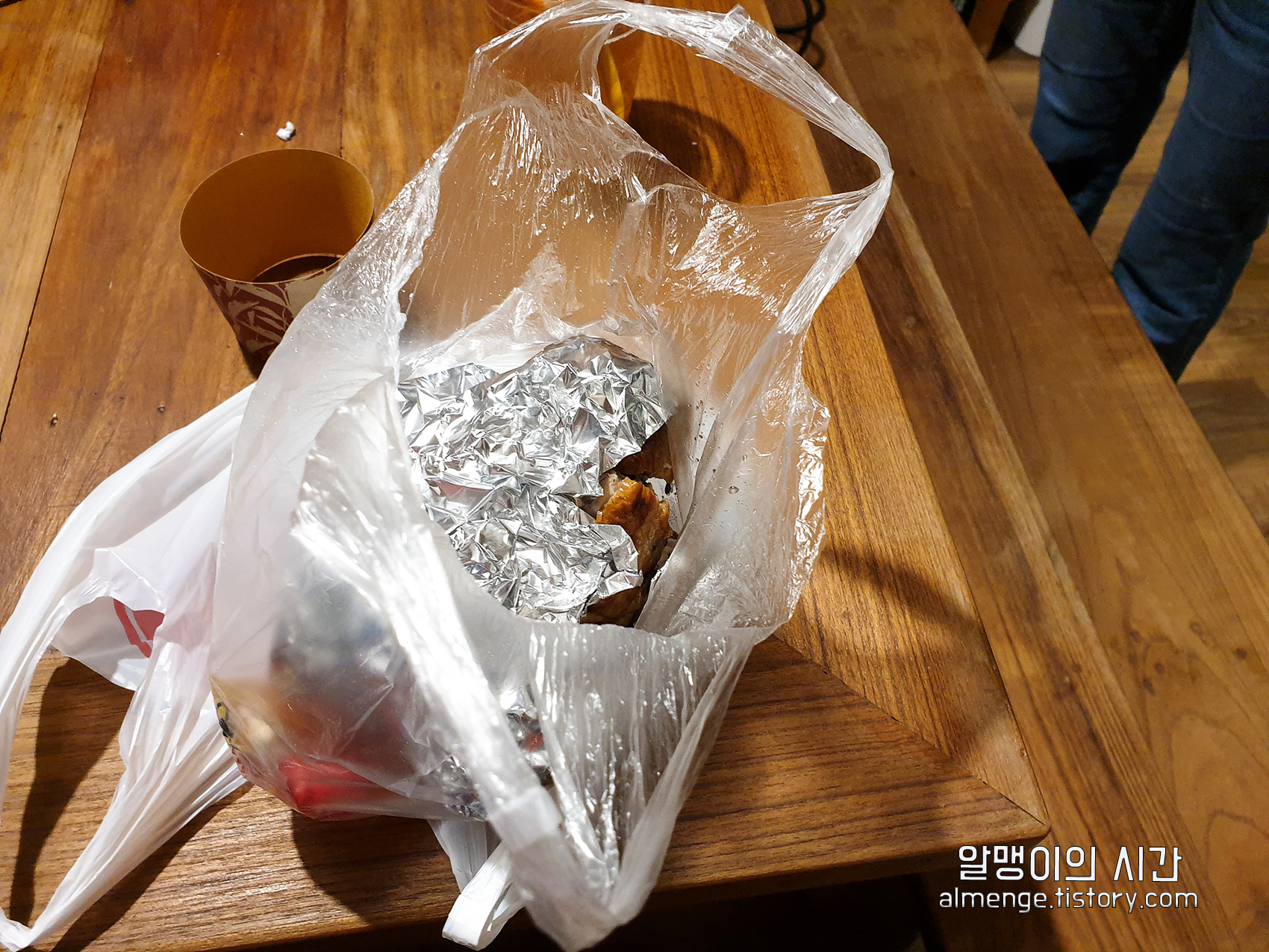 우리 생각해서 치킨을 두 봉지나 걸어놓고 간 그들의 정성을 무시할 수 가 없어 야식 2차에 돌입 ㅋㅋ ㅠㅠㅠ
