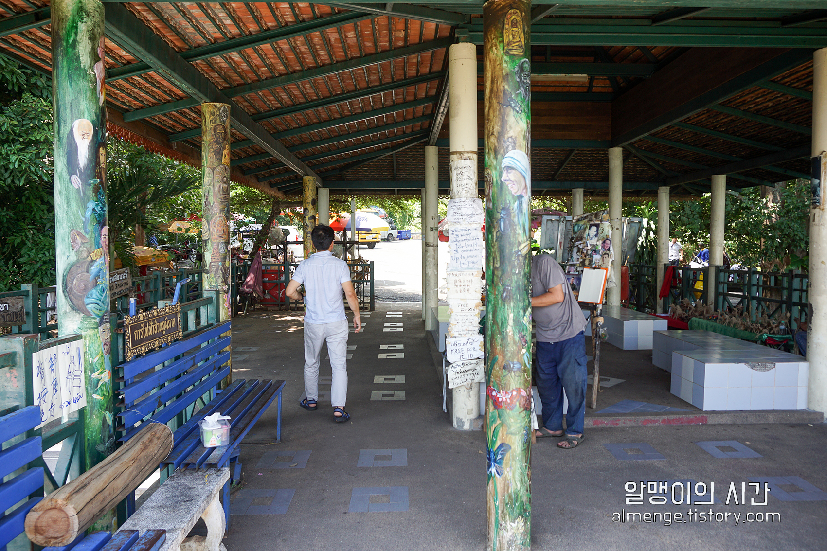 (태국에서 사원 방문할 때는 여자들의 경우 무릎위로 많이 올라오는 짧은 반바지, 치마, 민소매를 입으면 사원입장이 불가능하다. 남자들 복장은 민소매는 마찬가지로 안되지만 무릎길이 반바지까진 허용. 짧은 옷을 입고 왔다면 랩스커트 같은 걸 위에 두르면 입장 가능)