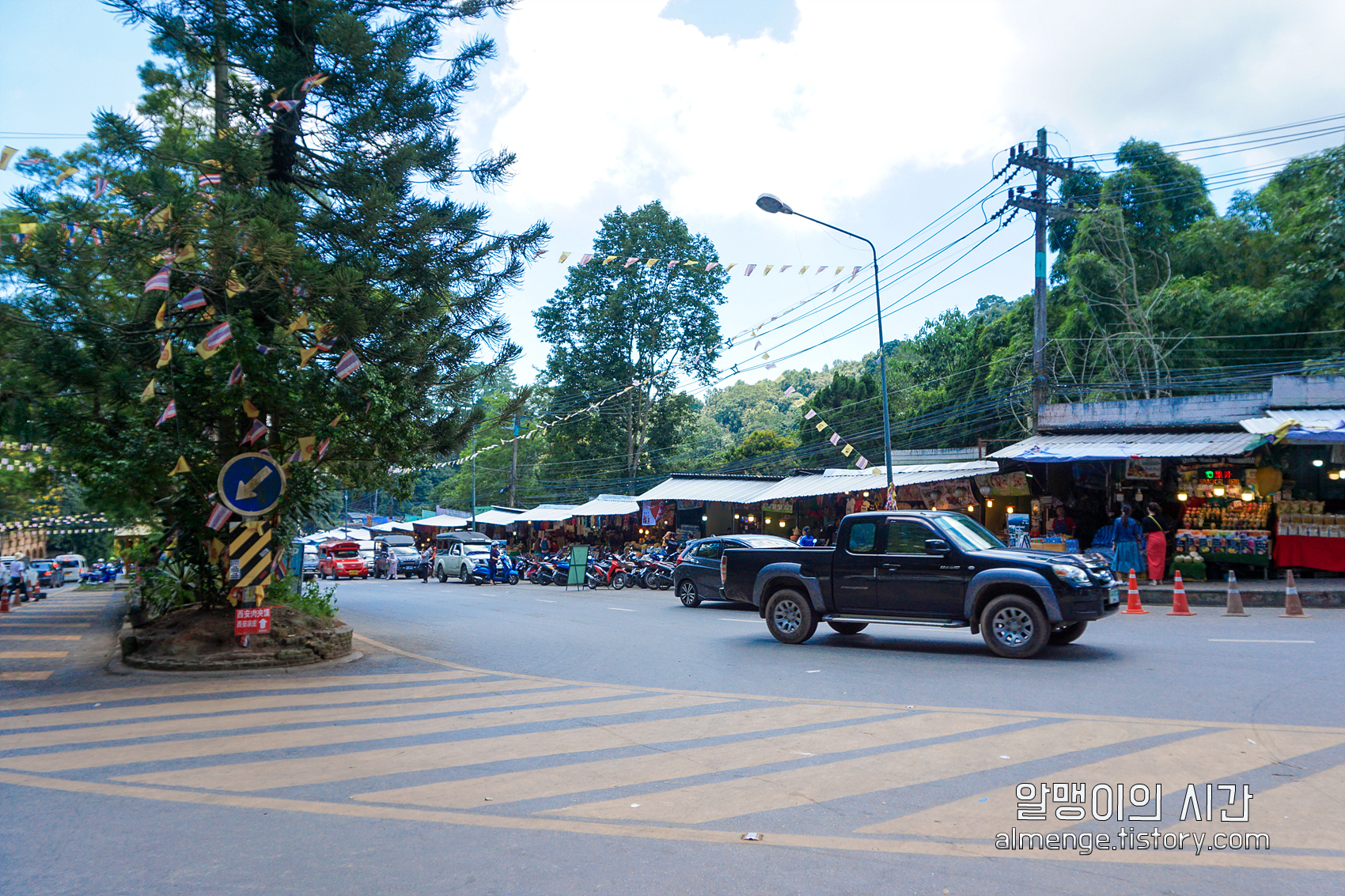 우리나라에서 지방으로 단풍놀이 가면 산 밑에 가게들 줄지어 있는 풍경과 굉장히 흡사한 풍경이다. 보다시피 대기중인 썽태우들이 아주 많다.