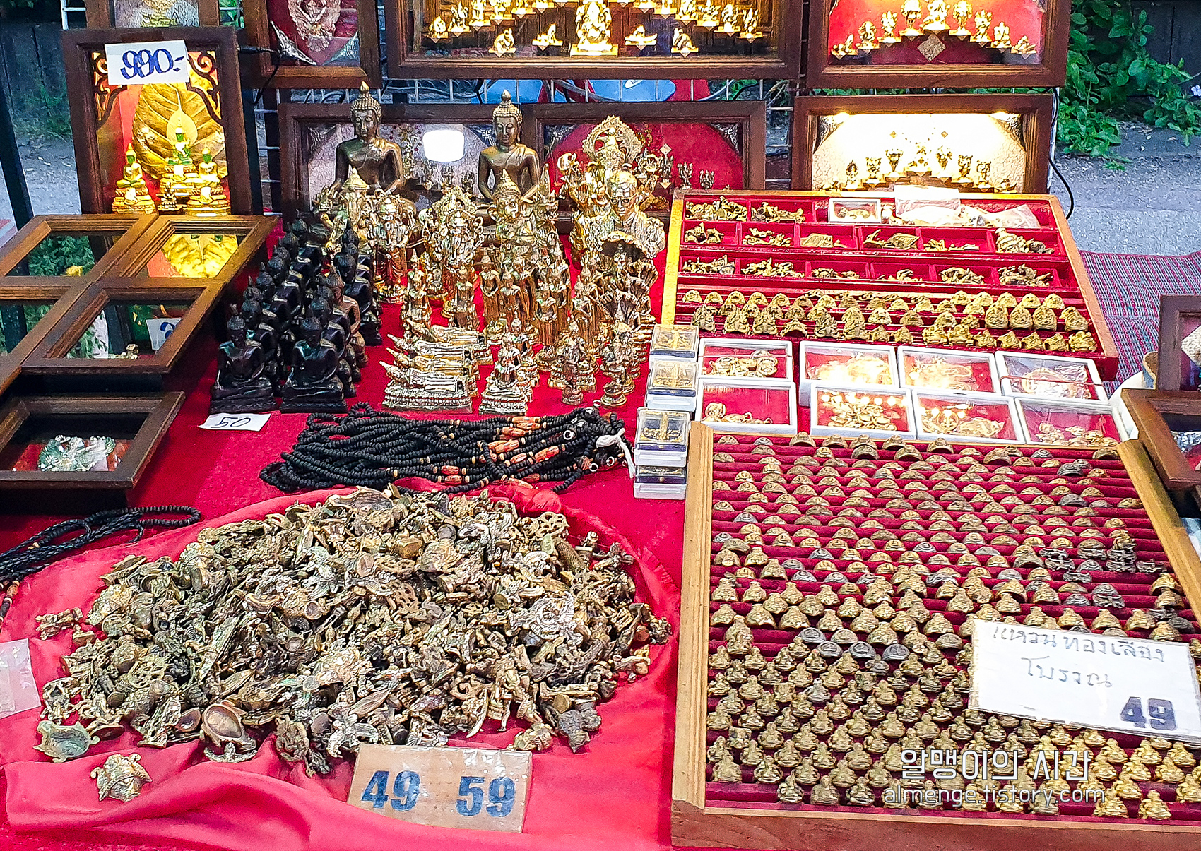 첨에 여행 계획할 때는 우리의 한국 귀국일이 일요일이어서 선데이 마켓을 구경할 시간이 별로 없어 아쉬웠는데, 어제 갔던 세러데이 마켓(토요 야시장)도 어마어마한 규모였던데다 선데이 마켓에서 팔던 물건들을 그대로 다 팔고 있어서 막상 여행와보니 하나도 아쉽지 않았다.