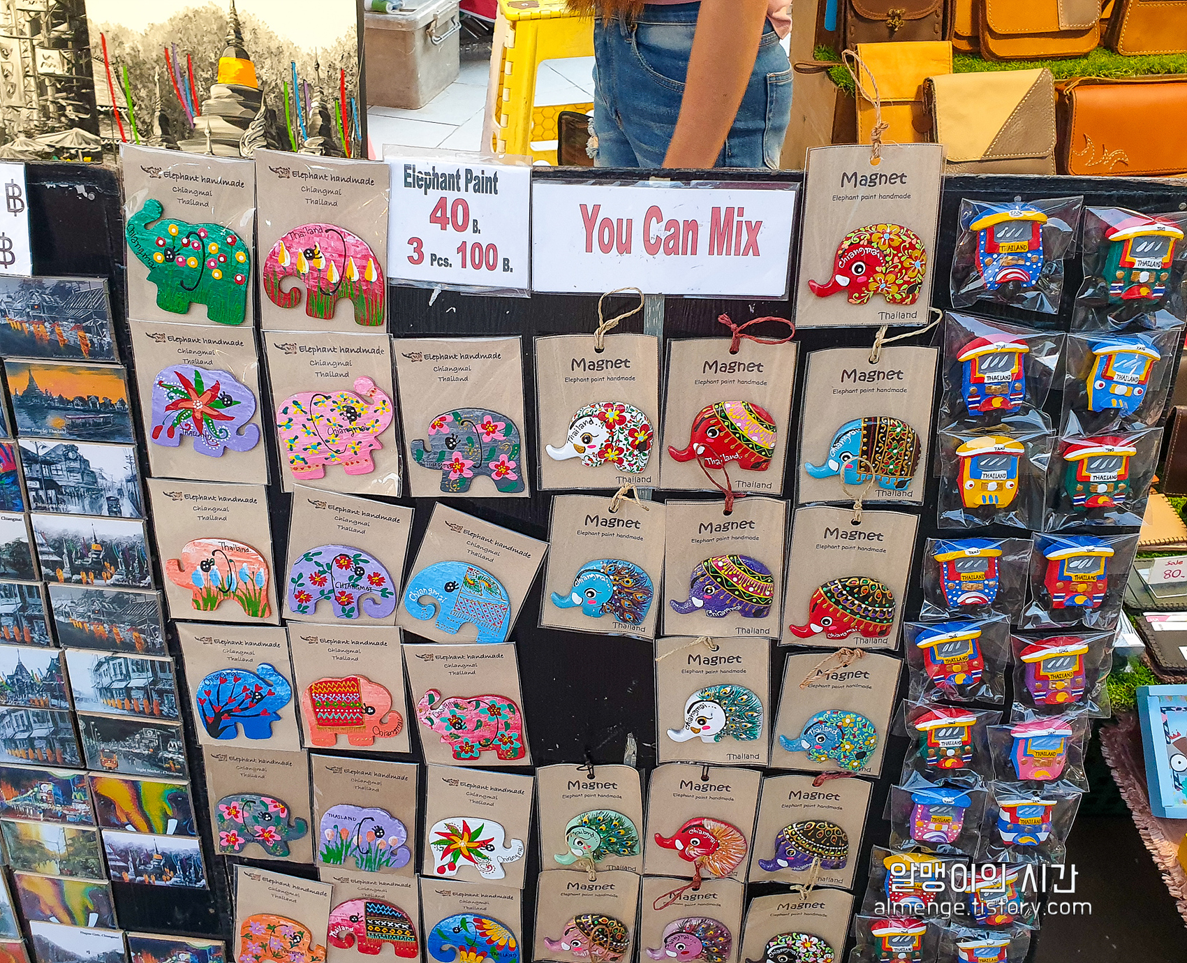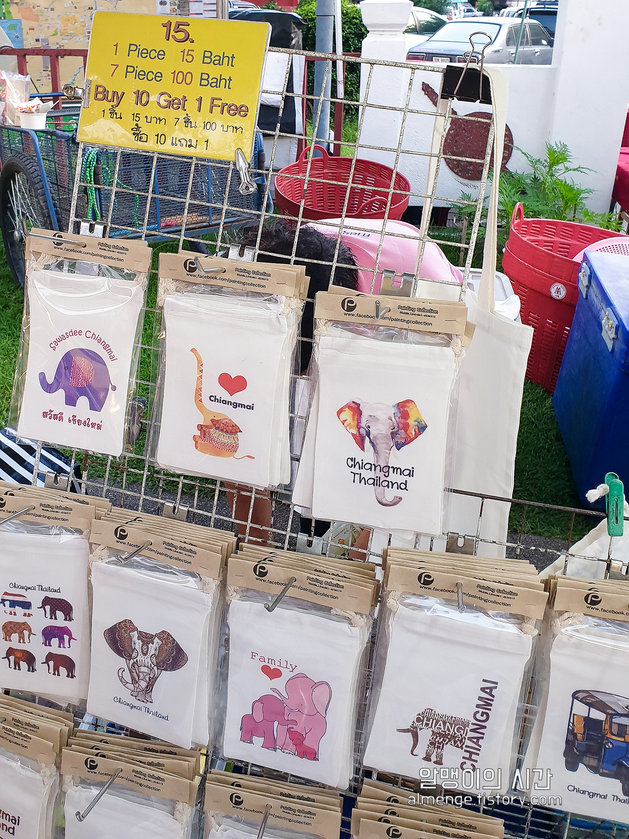 파우치 하나 15바트, 마그넷 하나 40바트! 많이사면 할인도 해준다. 치앙마이 세러데이 마켓, 선데이 마켓은 바가지가 거의 없어서 너무 좋았다. 바가지 단속을 한다더니 정말인듯