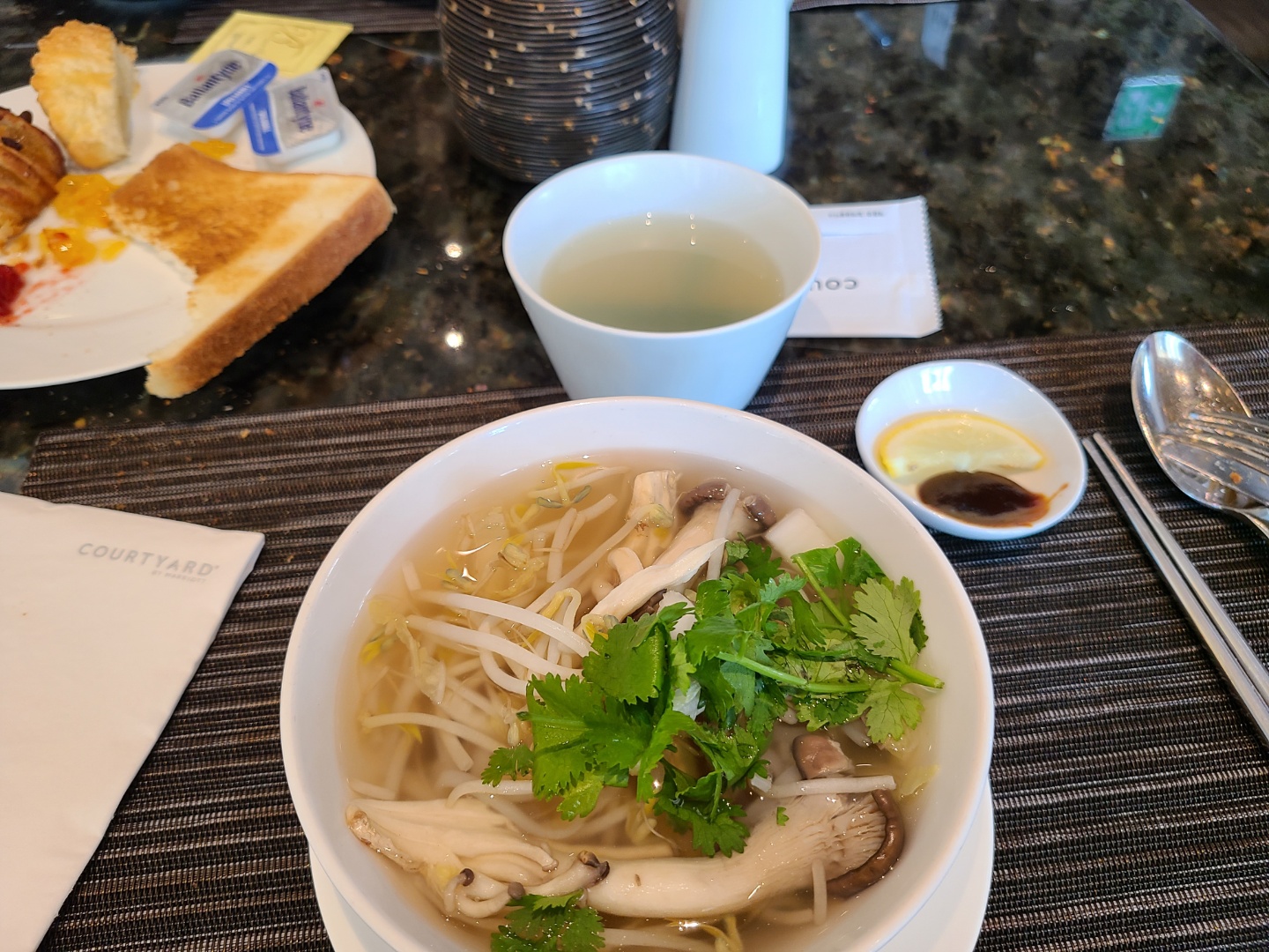 전 고수 좋아하니까 고수까지 팍팍 넣어서 국물 드링킹하니 해장이 따로 없었던 쌀국수 ㅎㅎㅎㅎ 확실히 어제 해피아워 메뉴보단 오늘 조식이 더 괜찮았어요.