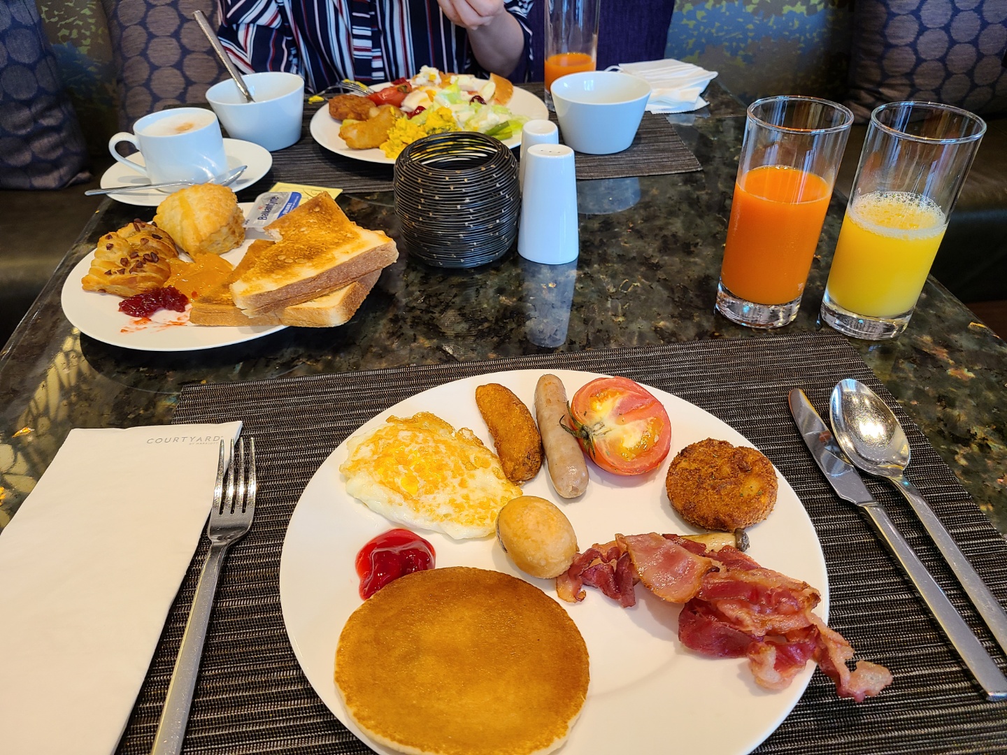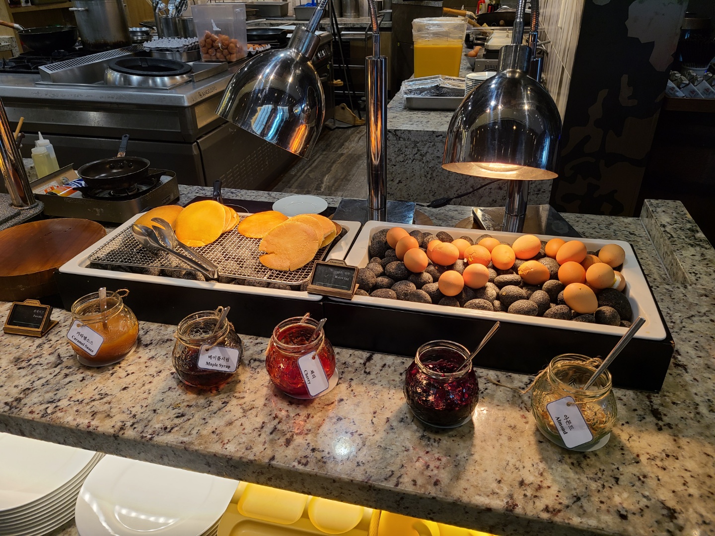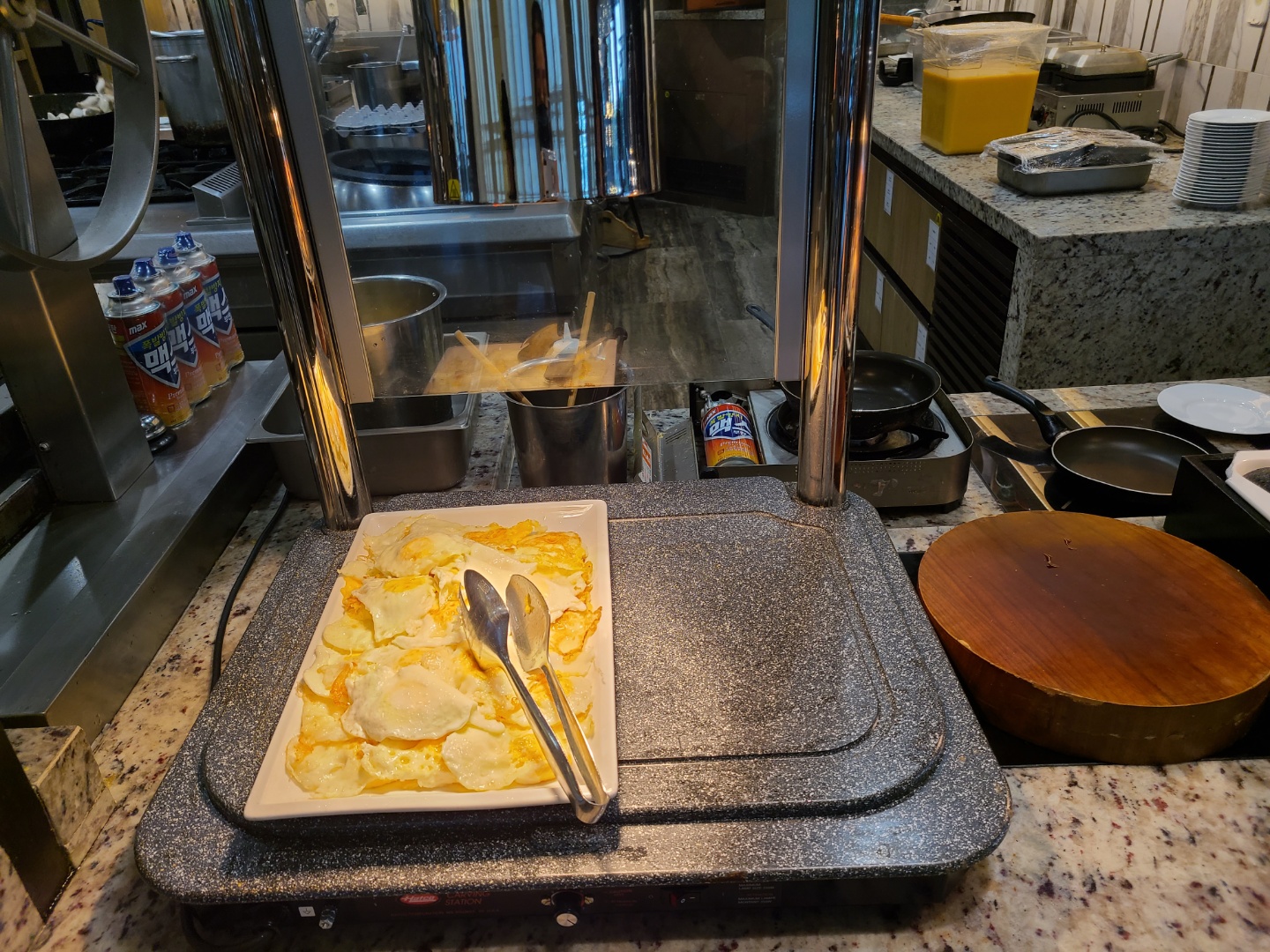 후기 봤을 땐 계란 프라이말고 오믈렛도 있었던 것 같은데, 코로나 때문인지 주방에 일하는 직원이 별로 없어서 프라이만 제공되었네요. 불러서 주문하기도 죄송할 정도
