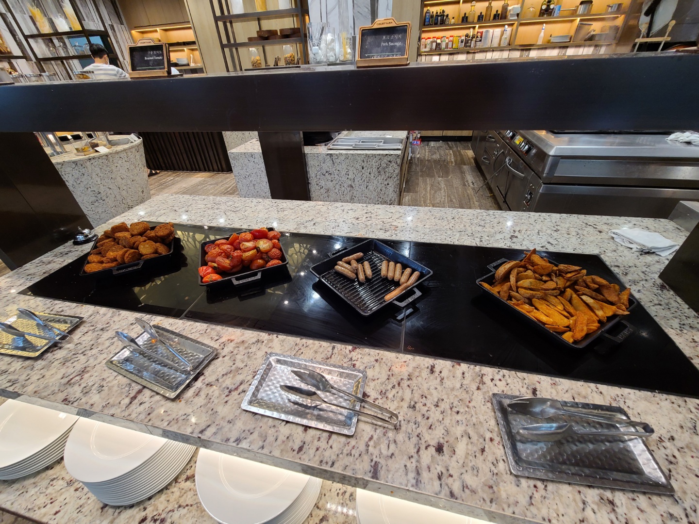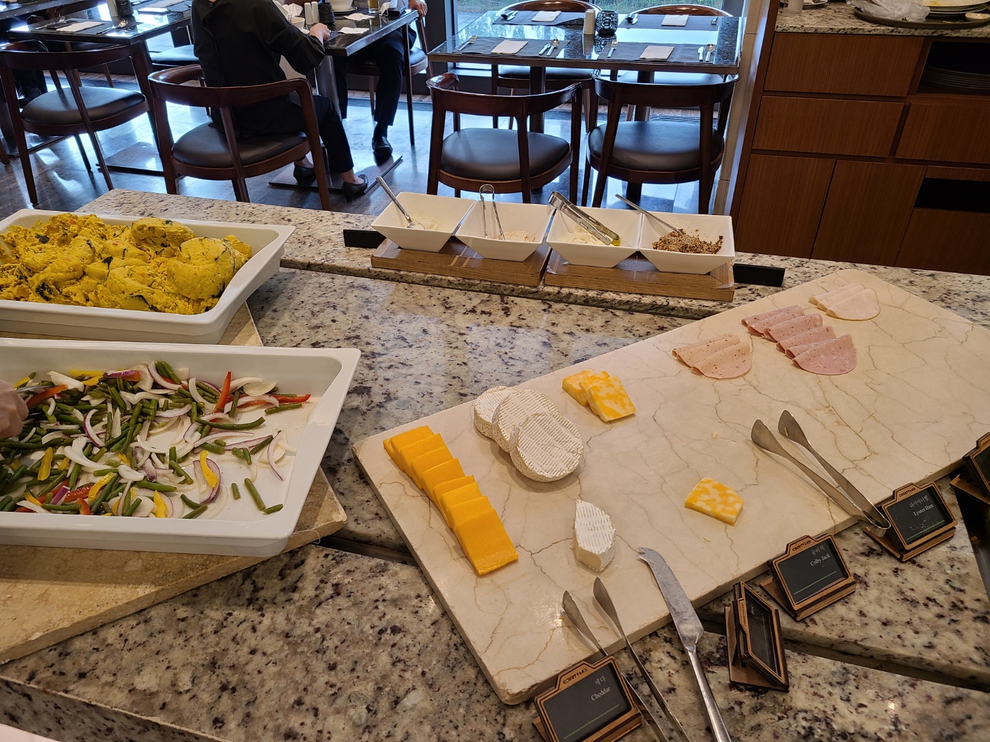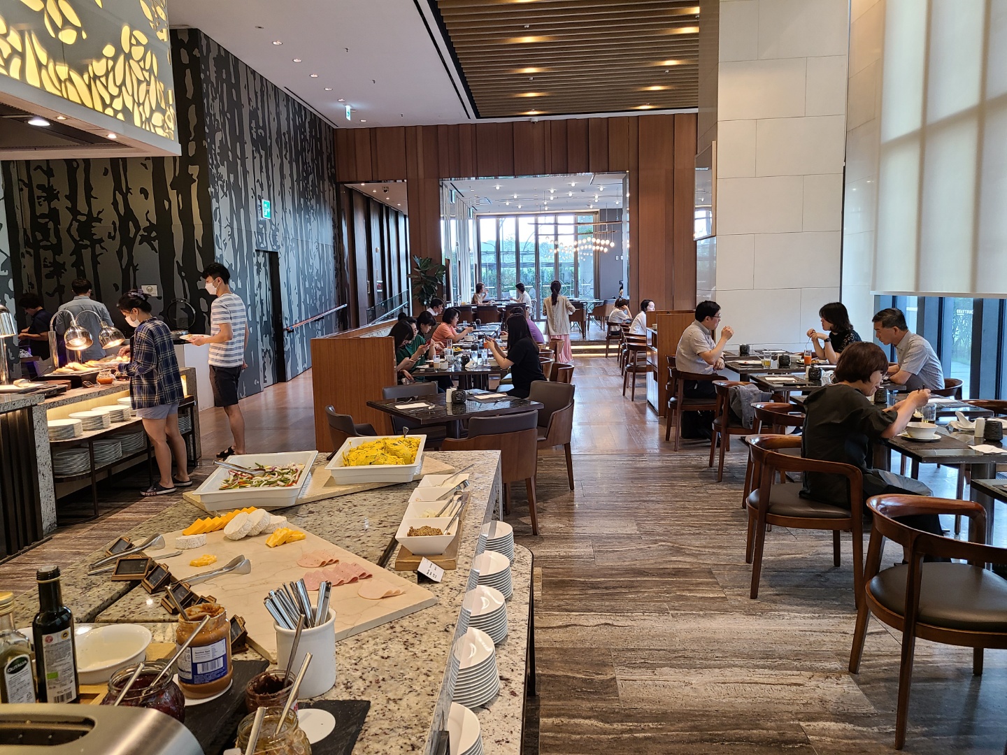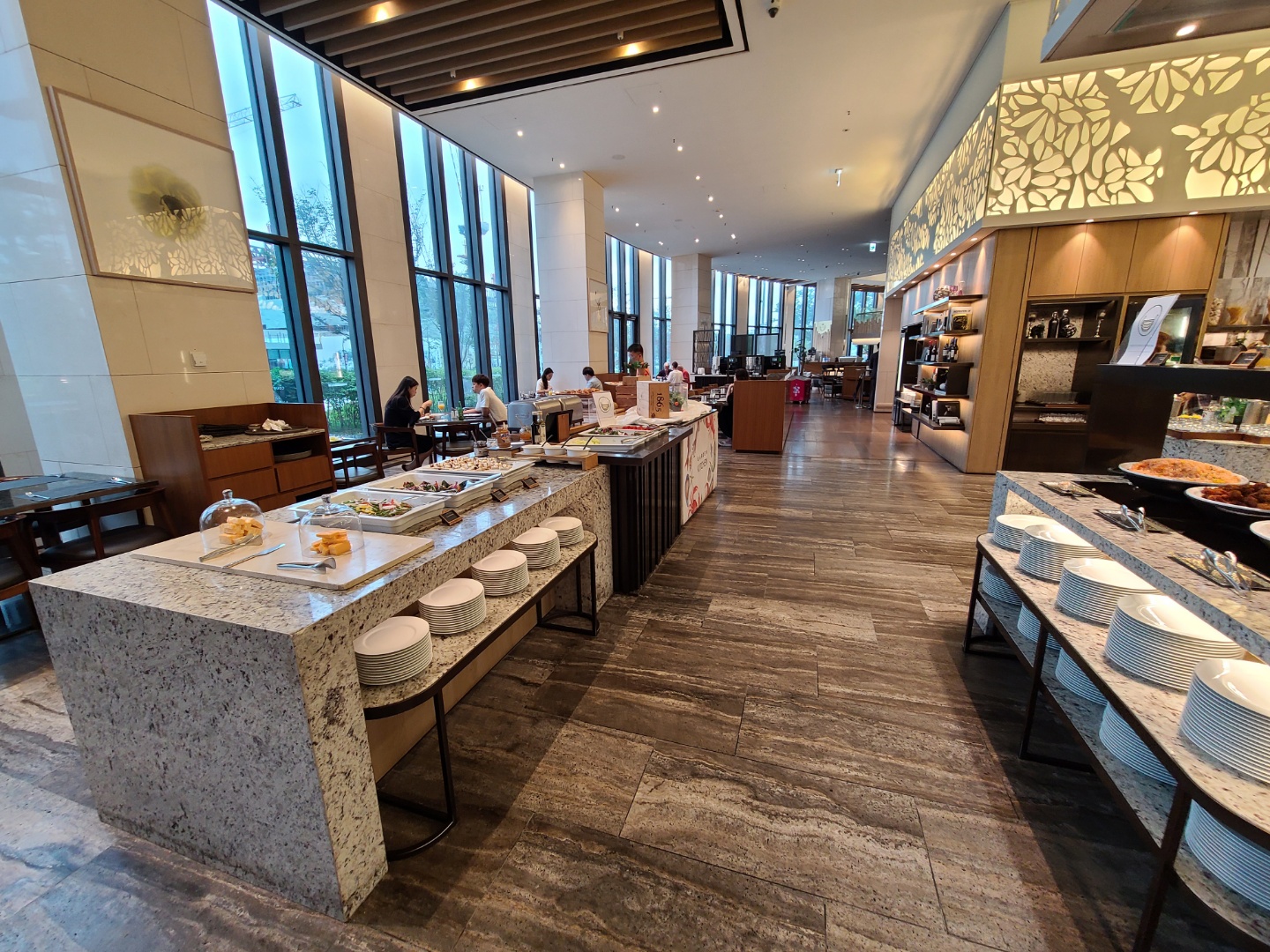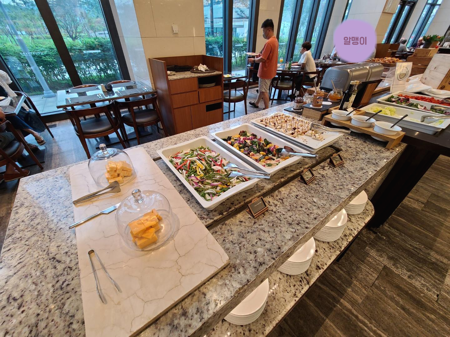 평일인 수요일이어서 라운지에 사람이 많지는 않았어요. 주말에 가면 음식도 제대로 못받고 줄서야 한다던데 평일이라 쾌적해서 좋았어요. 사람이 많지 않아서 테이블 간격을 유지하며 앉을 수 있었습니다.