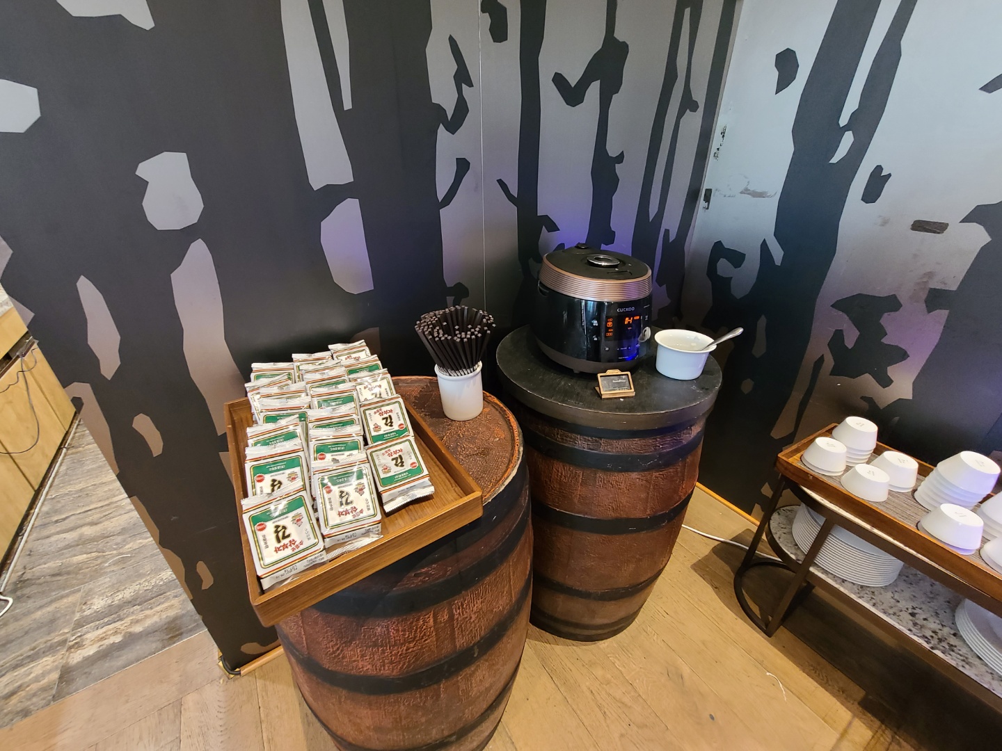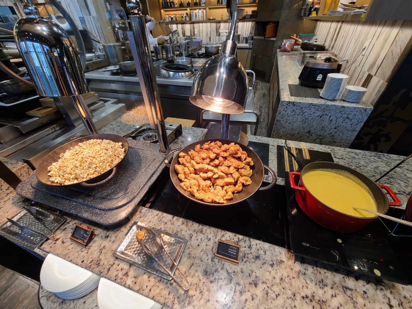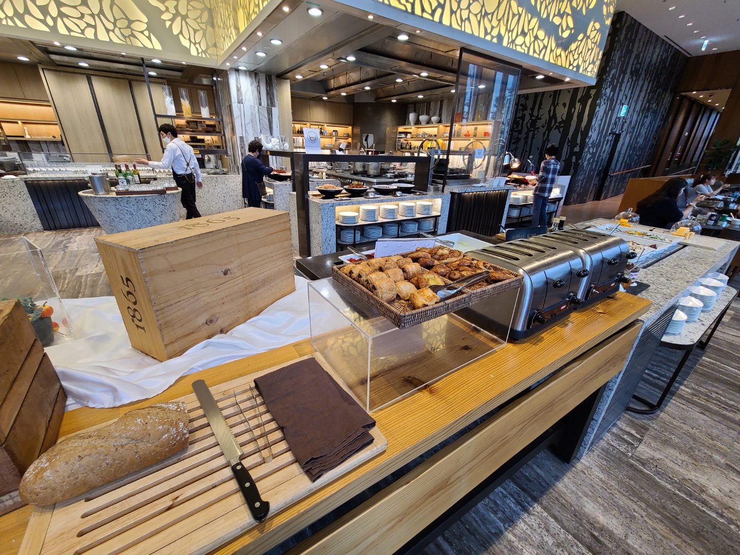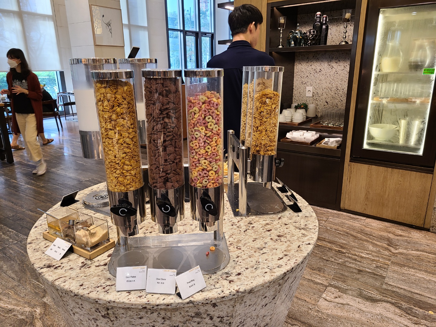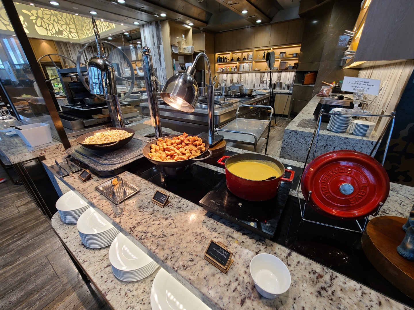평일인 수요일이어서 라운지에 사람이 많지는 않았어요. 주말에 가면 음식도 제대로 못받고 줄서야 한다던데 평일이라 쾌적해서 좋았어요. 사람이 많지 않아서 테이블 간격을 유지하며 앉을 수 있었습니다.