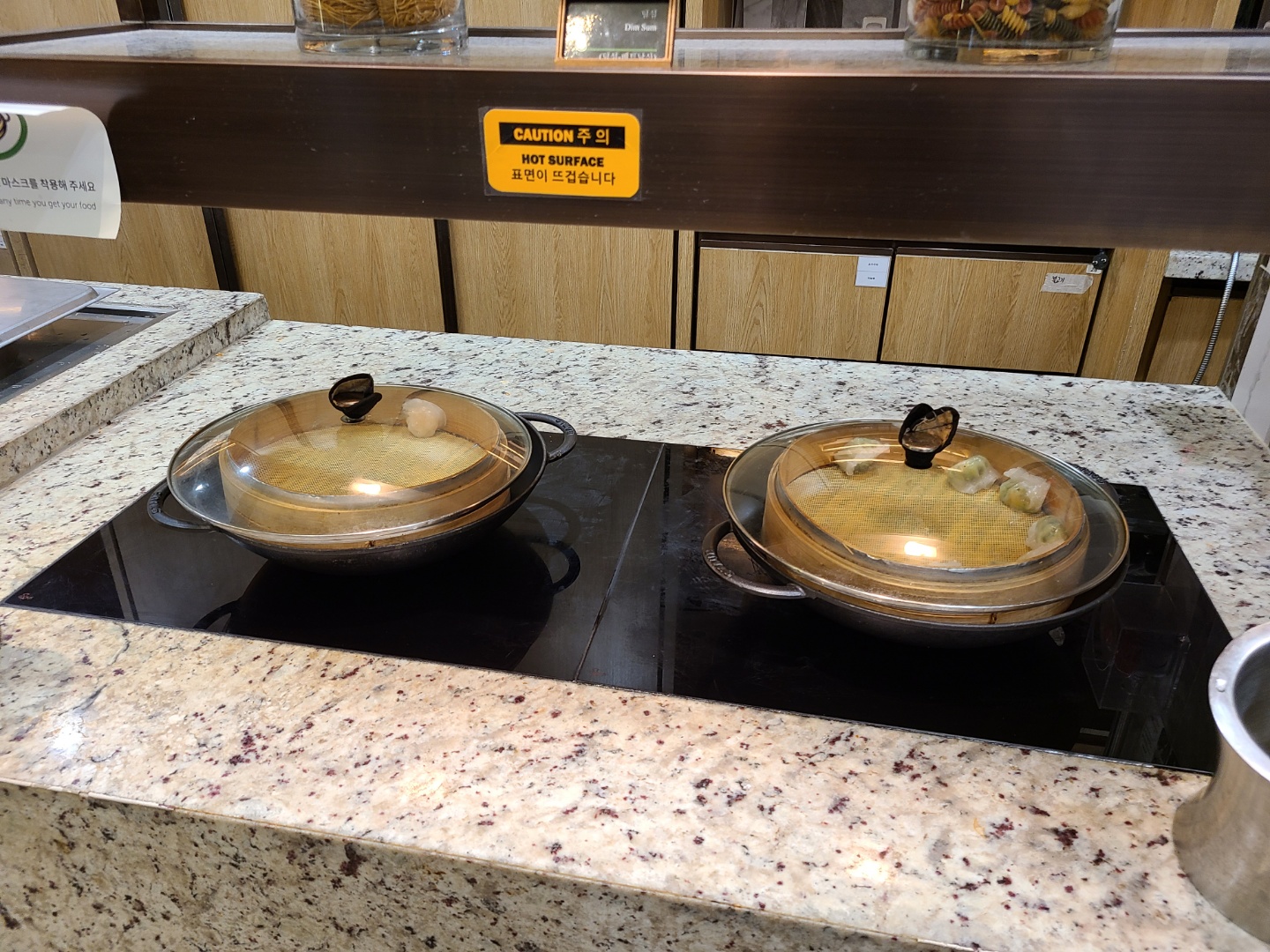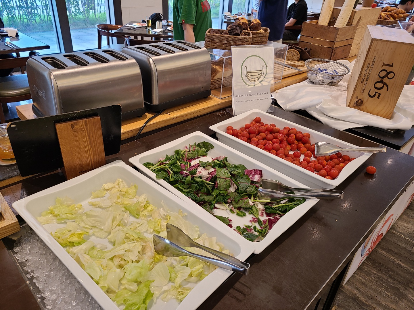 코로나로 인해 식당입구에서 QR코드를 찍고, 손소독 후 마스크 착용해야만 입장가능했어요. 음식을 뜨러 돌아다닐 때는 마스크 착용이 필수이고, 앉아서 음식 먹을 때만 마스크를 벗을 수 있었어요. 깜빡하고 마스크 착용을 잊은 채 돌아다니는 사람에겐 호텔스텝이 즉시 마스크 착용을 요청하는 모습을 볼 수 있었어요. 이런 면에선 믿을 수 있었던!