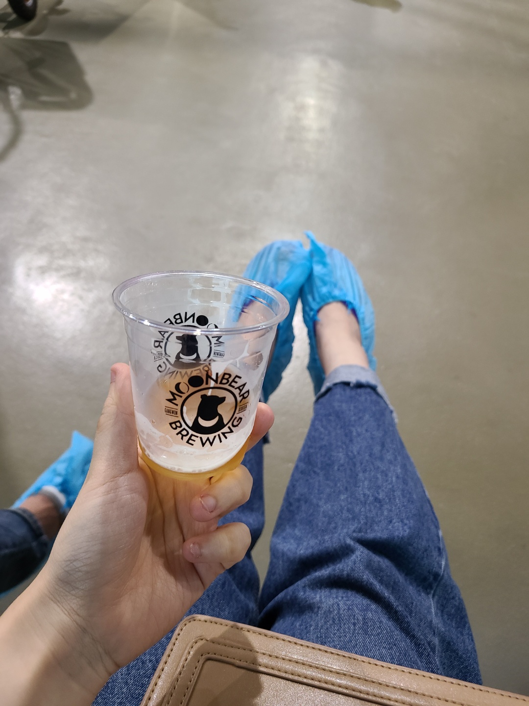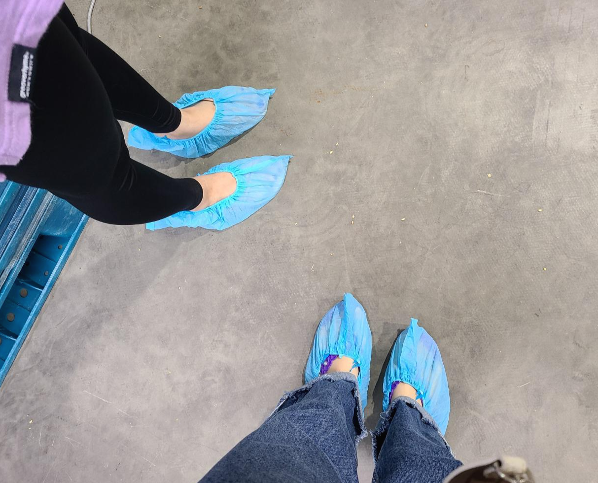 양조장에 입장하기 전엔 이렇게 신발 위에 덧씌울 수 있는 일회용 덧신을 신고 들어가야 했어요. 입구에서 나눠줍니다.