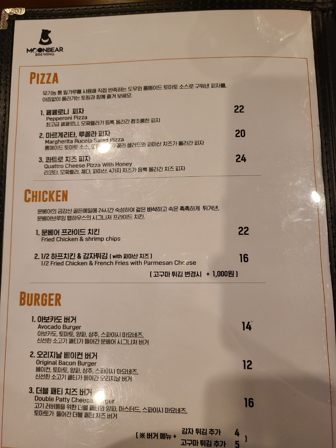 메뉴판 참고하시고여. 이거 말고도 감튀 등의 비교적 가벼운 안주도 더 있었습니다.