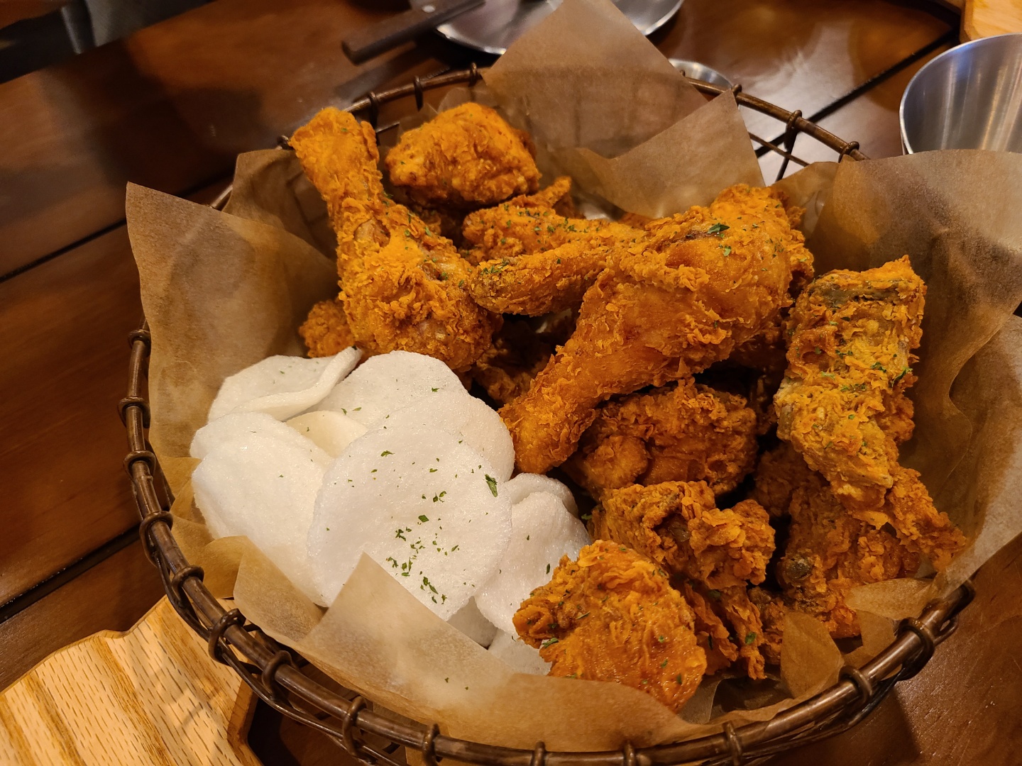 솔직히 뭐에 숙성시키던 간에 '갓 튀겨나온 치킨'은 맛 없는게 더 반칙 아닌가요? ㅋㅋㅋ 주방에서 갓 튀겨져 나온 치킨은 입천장이 데일 것 마냥 뜨겁고 바삭바삭하니 정말 맛있었어요. 추천추천!
