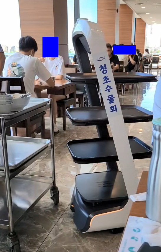 주문을 기다리고 있는데 눈 앞에서 뭐가 막 바쁘게 돌아다니길래 봤더니 서빙 로봇 ㅋㅋㅋㅋ여긴 홀직원들 뿐만 아니라 이렇게 로봇들도 함께 돌아다니면서 음식을 서빙하고 있었어요. 저 쟁반에 음식을 싣고 지혼자 움직여서 딱 그 테이블 가서 서면 손님이 음식을 받거나, 직원이 와서 내려줌 ㅋㅋㅋ 신박하다