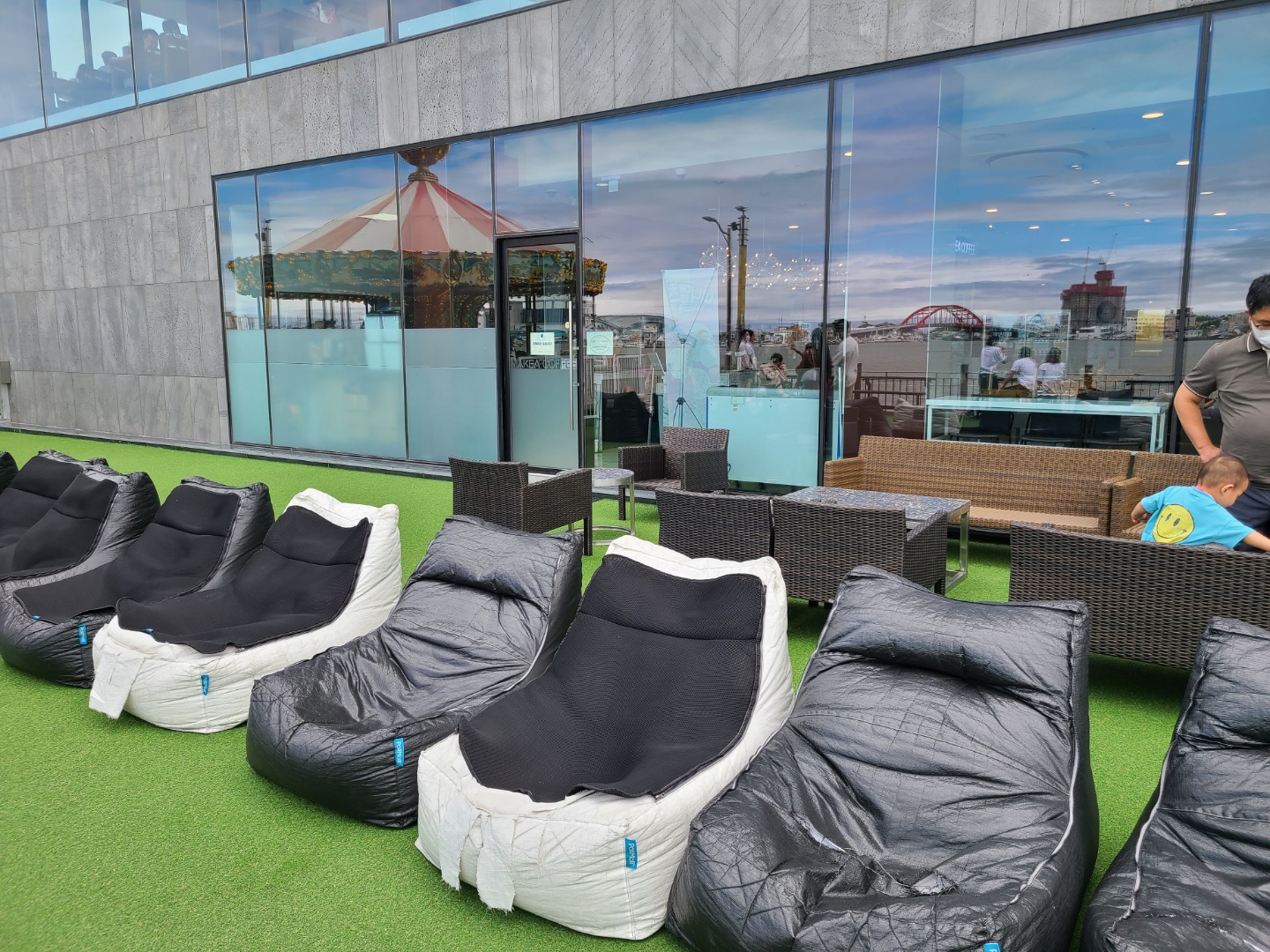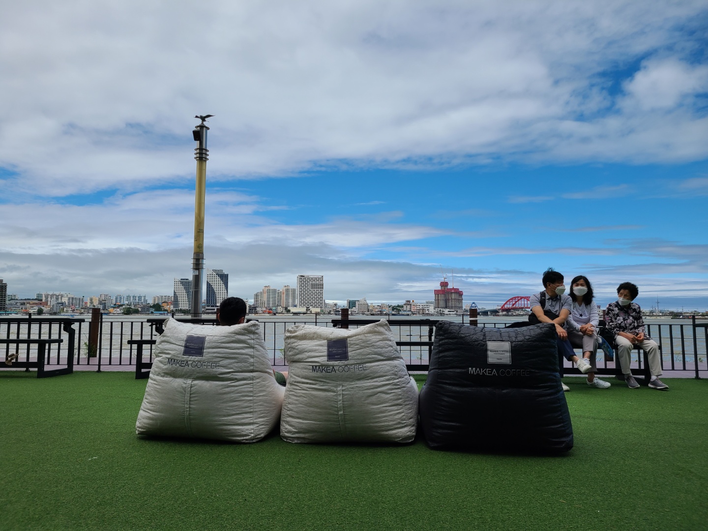 앉아서 호수뷰를 즐길 수 있도록 빈백들이 쫙 펼쳐져 있었어요. 날씨 좋지, 바람 시원하지~ 빈백에 누워 있는게 그렇게 좋더라구요.