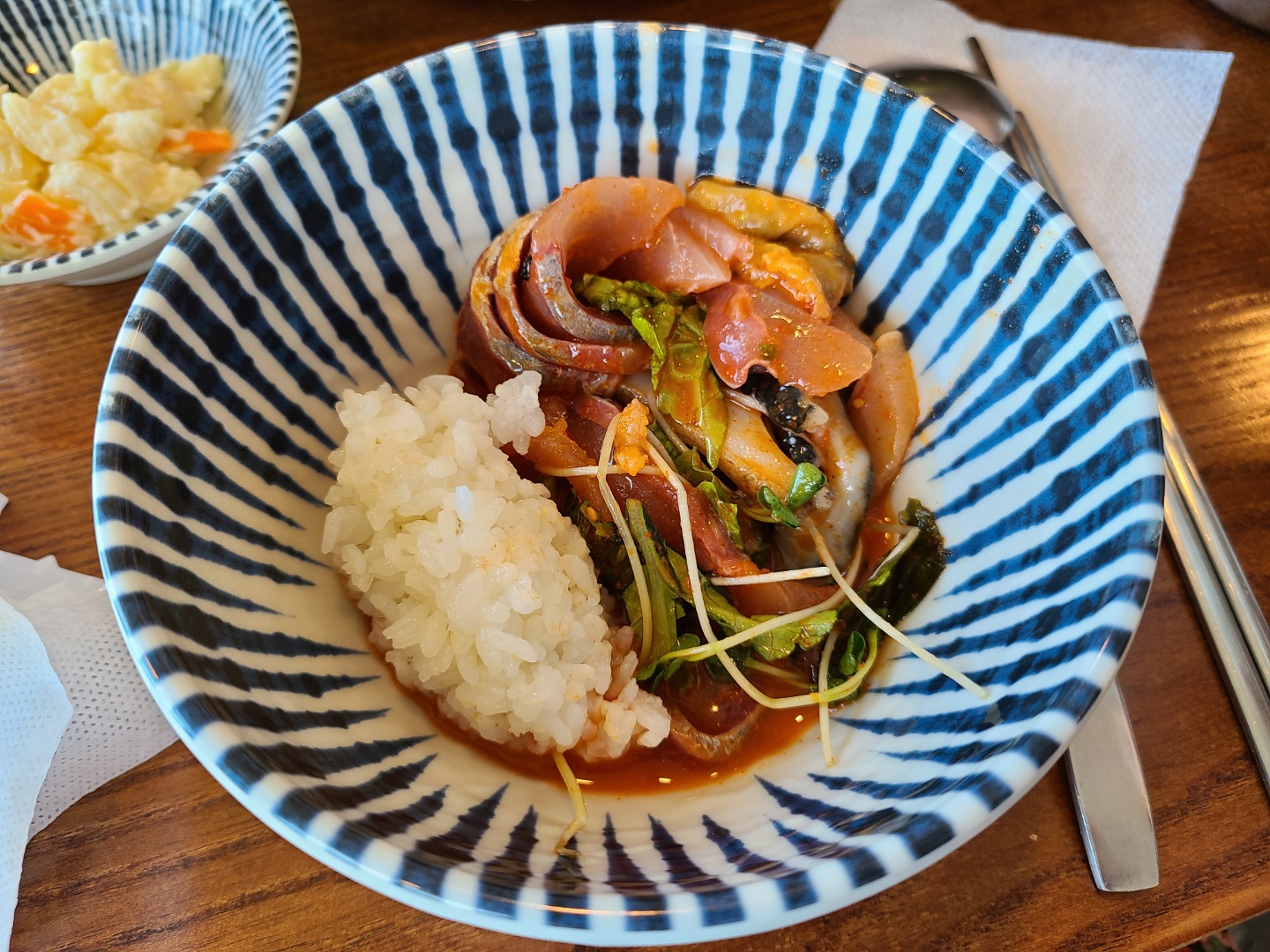 하지만 같이간 친구는 해삼이랑 멍게를 별로 안좋아하는지라 이거보단 오징어물회가 더 낫다고 했으니 참고! 아무래도 해삼, 멍게 포함 여러 해산물이 섞여있다보니 해산물 특유의 향 때문에 친구가 잘 못먹었던 것 같아요. 멍게랑 해삼은 특유의 향이 좀 강하니..