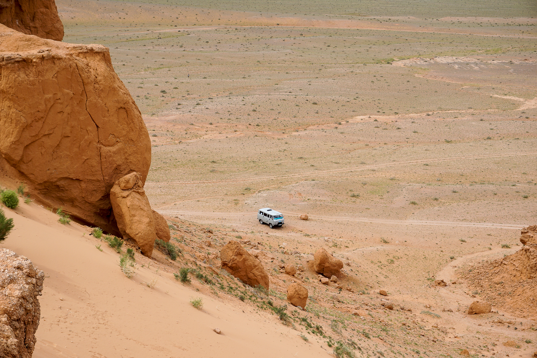 오랜시간 달려 드디어 도착한 바얀작. 우리 푸르공이 이만치 작아질만큼 언덕을 올라야지만 멋진 대자연을 감상할 수 있었다.