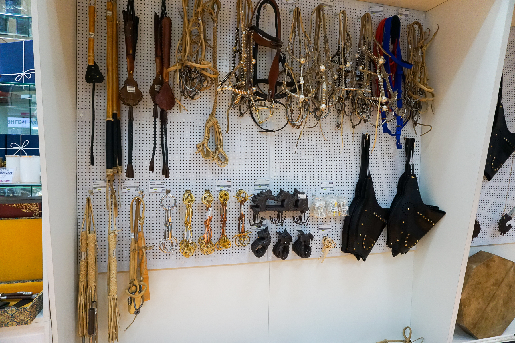 징기스칸의 후예들 답게 백화점 한쪽 코너에는 이렇게 아무렇지도 않게, 마치 슈퍼에서 과자파는 것 마냥 말 안장과 말 채찍 등 승마용품을 판매하고 있다.