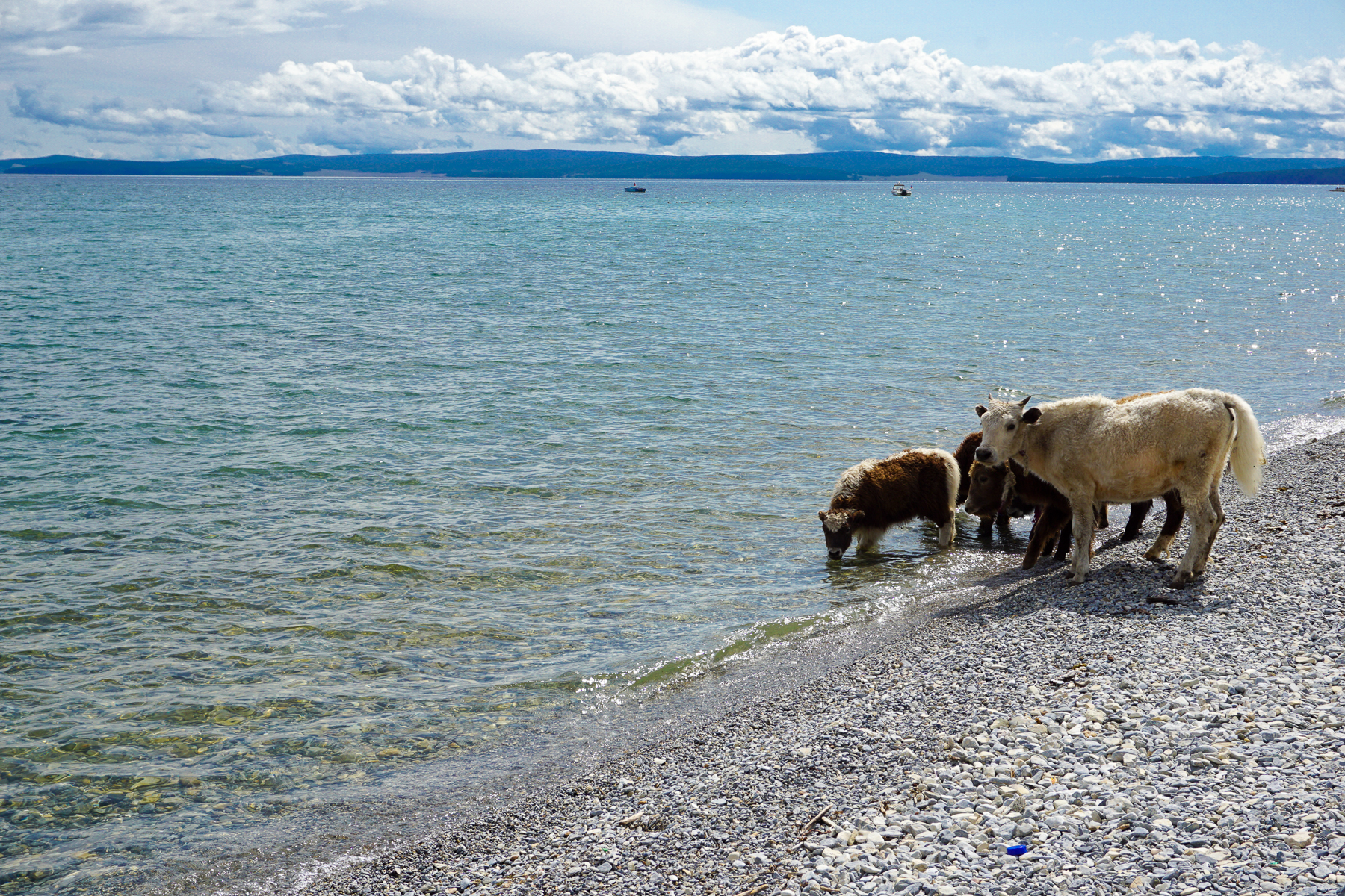 찰랑찰랑, 마치 파도가 치는 것 같던 호숫가에 목을 축이러 온 동물들. 이곳 동물들은 울타리란게 따로 없이 여기저기를 자유롭게 돌아다닌다. 호숫가, 초원, 차도는 물론 게르 문앞까지 왔다 갔다 하는 통에 어느 날 아침 게르문을 열면 왠 야크가 문 앞에 마중나와 있을 수도 있다.