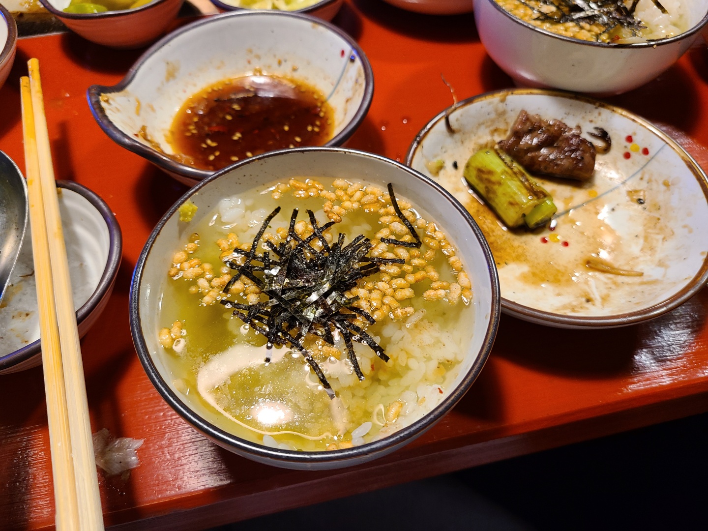 물에 밥 말아먹는 느낌인데 와사비맛이 추가된 맛? 오차츠케까지 먹고 입가심하며 아름답게 마무리