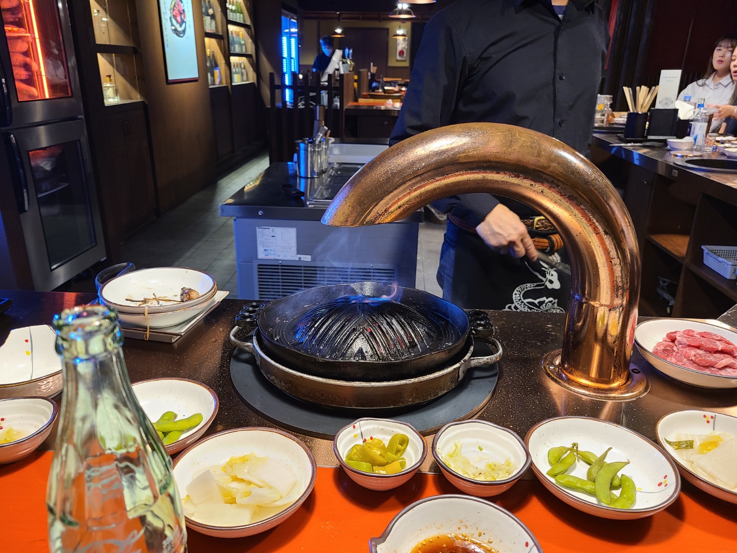 불판 정리하면서 중간에 소박한 불쇼 한 번 해주시고 다시 고기를 구워주심.