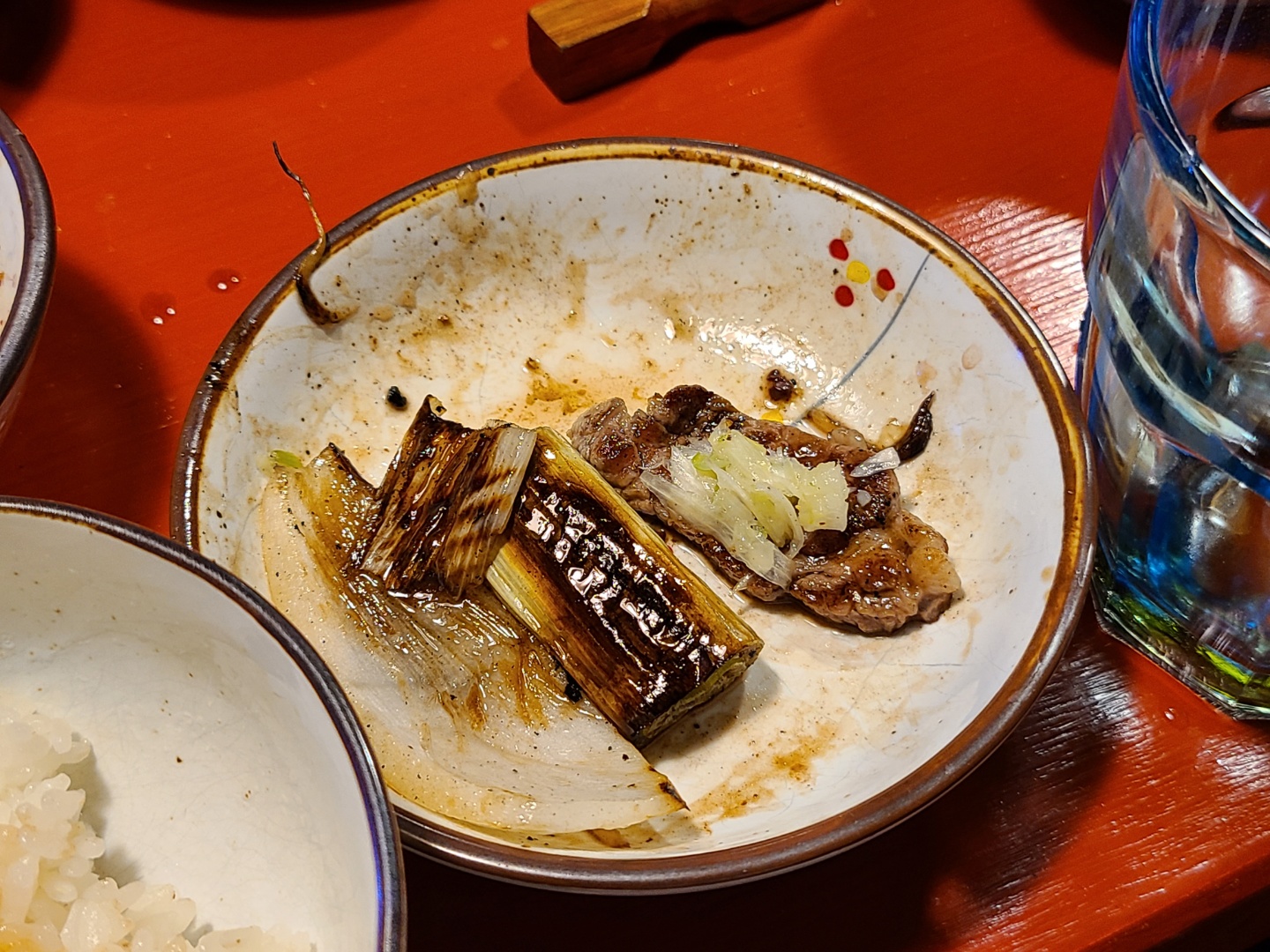 간장같은 건 이곳의 특제 소스라고 하네요. 여기에 고기 찍어먹다보면 소스에 고기 기름이 섞이게 되는데, 나중에는 고기기름 섞인 소스에 밥 비벼 먹으면 좋다고 해서 쌀밥도 미리 주문했어요.